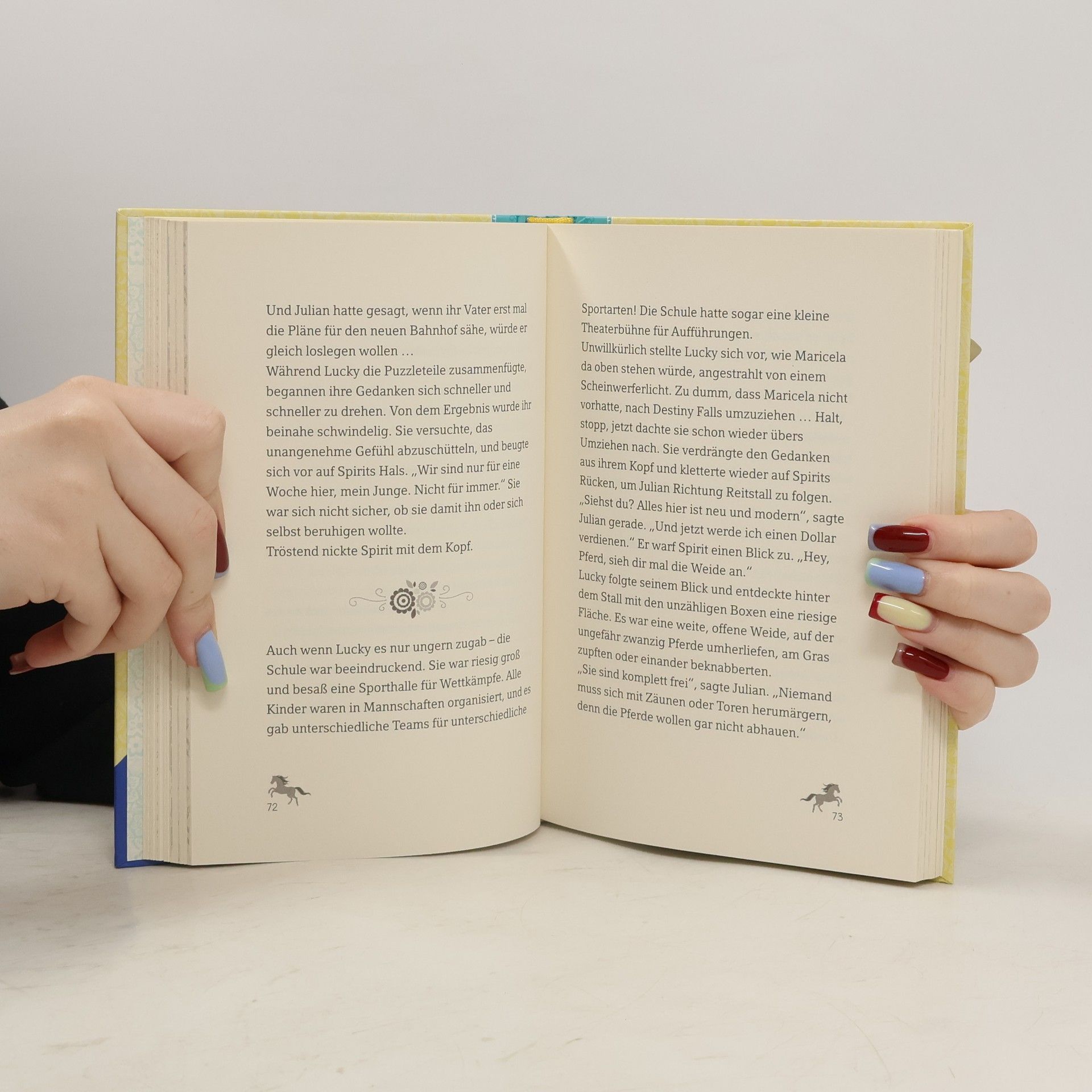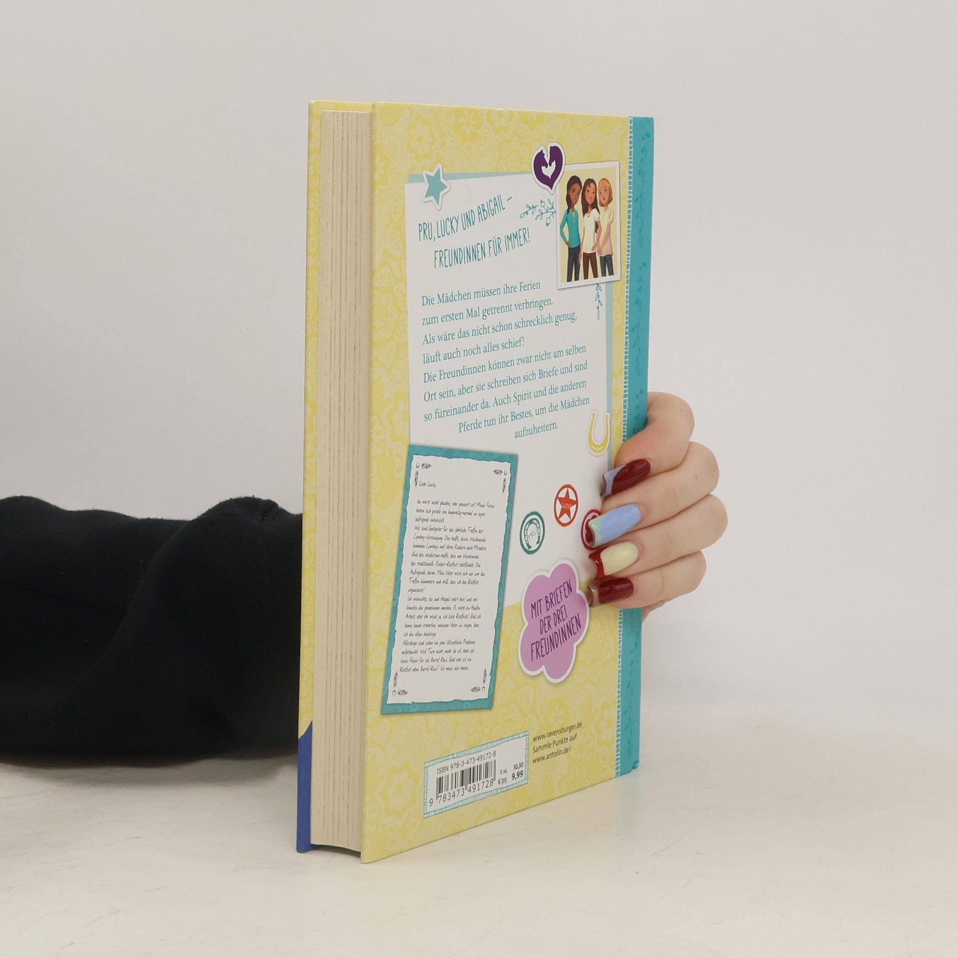 Lucky, Abigail und Pru - Freundinnen für immer! Die Mädchen müssen ihre Ferien zum ersten Mal getrennt verbringen: Pru hilft ihrem Vater auf dem Hof, Abigail besucht ihre Cousine und Lucky fährt mit ihrem Vater und ihrer neuen Stiefmutter in die Stadt. Als wäre das nicht schon schrecklich genug, läuft auch noch alles schief! Obwohl die Mädchen nicht zusammen sein können, sind sie doch füreinander da. Tauche ein in Spirits Welt und erfahre in den Briefen viel Neues über Lucky, Pru und Abigail! Tauche ein in Spirits Welt und erfahre in den Briefen viel Neues über Lucky, Pru und Abigail! Die Mädchen müssen ihre Ferien getrennt voneinander verbringen: Pru bleibt in Miradero, um ihrem Vater auf dem Hof zu helfen, Abigail besucht ihre schicke Cousine und Lucky fährt mit ihrem Vater und ihrer neuen Stiefmutter in die Stadt. Als ob es nicht schon schrecklich genug wäre, getrennt zu sein, läuft über die Ferien nichts wie erwartet! Pru muss alleine ein Kinderrodeo leiten, Abigails Cousine Ariella will keine Zeit mit ihr verbringen und Luckys Cousin Julian deutet immer wieder an, dass Luckys Familie ihren Besuch in der Stadt verlängern wird … und zwar für immer! Nicht zusammen zu sein ist schwer, aber die Mädchen sind trotzdem füreinander da!