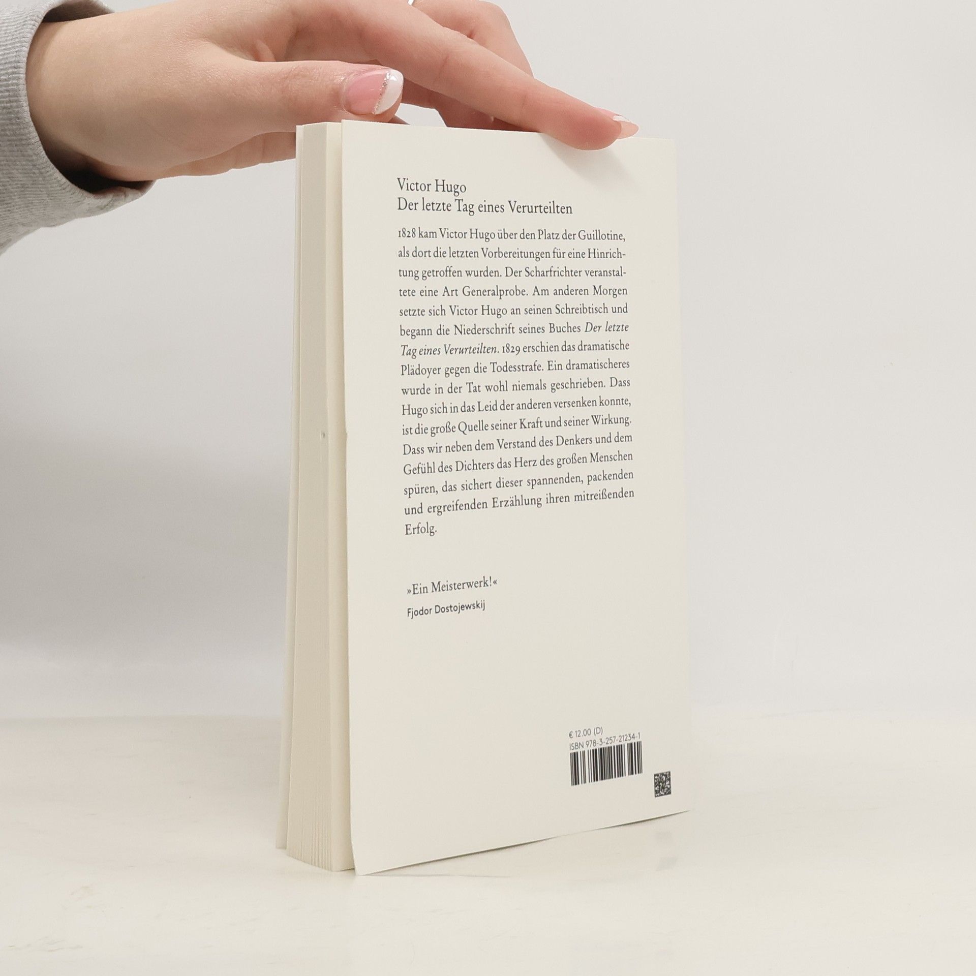 1828 kam Victor Hugo über den Platz der Guillotine, als dort die letzten Vorbereitungen für eine Hinrichtung getroffen wurden. Der Scharfrichter veranstaltete eine Art Generalprobe. Am anderen Morgen setzte sich Victor Hugo an seinen Schreibtisch und begann die Niederschrift seines Buches ›Der letzte Tag eines Verurteilten‹. 1829 erschien das dramatische Plädoyer gegen die Todesstrafe. Ein dramatischeres wurde in der Tat wohl niemals geschrieben. Dass Hugo sich in das Leid der anderen versenken konnte, ist die große Quelle seiner Kraft und seiner Wirkung. Dass wir neben dem Verstand und dem Gefühl des Dichters das Herz des großen Menschen spüren, das sichert dieser spannenden, packenden und ergreifenden Erzählung ihren mitreißenden Erfolg.