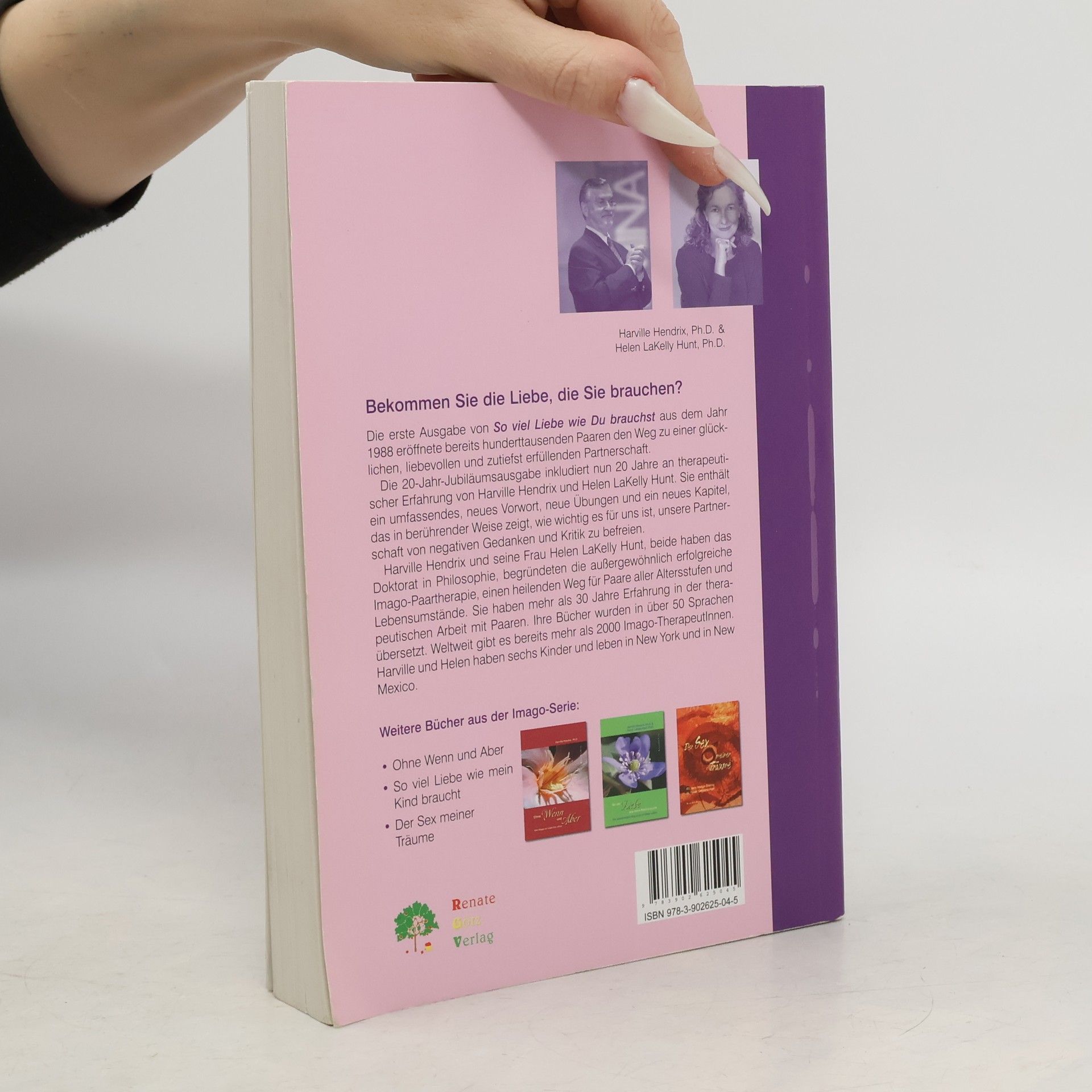 Die erste Ausgabe von So viel Liebe wie Du brauchst aus dem Jahr 1988 eröffnete bereits hunderttausenden Paaren den Weg zu einer glücklichen, liebevollen und zutiefst erfüllenden Partnerschaft. Die 20-Jahr-Jubiläumsausgabe inkludiert nun 20 Jahre an therapeutischer Erfahrung von Harville Hendrix und Helen LaKelly Hunt. Sie enthält ein umfassendes, neues Vorwort, neue Übungen und ein neues Kapitel, das in berührender Weise zeigt, wie wichtig es für uns ist, unsere Partnerschaft von negativen Gedanken und Kritik zu befreien. Herville Hendrix und seine Frau Helen LaKelly Hunt, beide haben das Doktorat in Philosophie, begründeten die außergewöhnlich erfolgreiche Imago-Paartherapie, einen heilenden Weg für Paare aller Altersstufen und Lebensumstände. Sie haben mehr als 30 Jahre Erfahrung in der therapeutischen Arbeit mit Paaren. Ihre Bücher wurden in über 50 Sprachen übersetzt. Weltweit gibt es bereits mehr als 2000 Imago-TherapeutInnen. Harville und Helen haben sechs Kinder und leben in New York und in New Mexico.