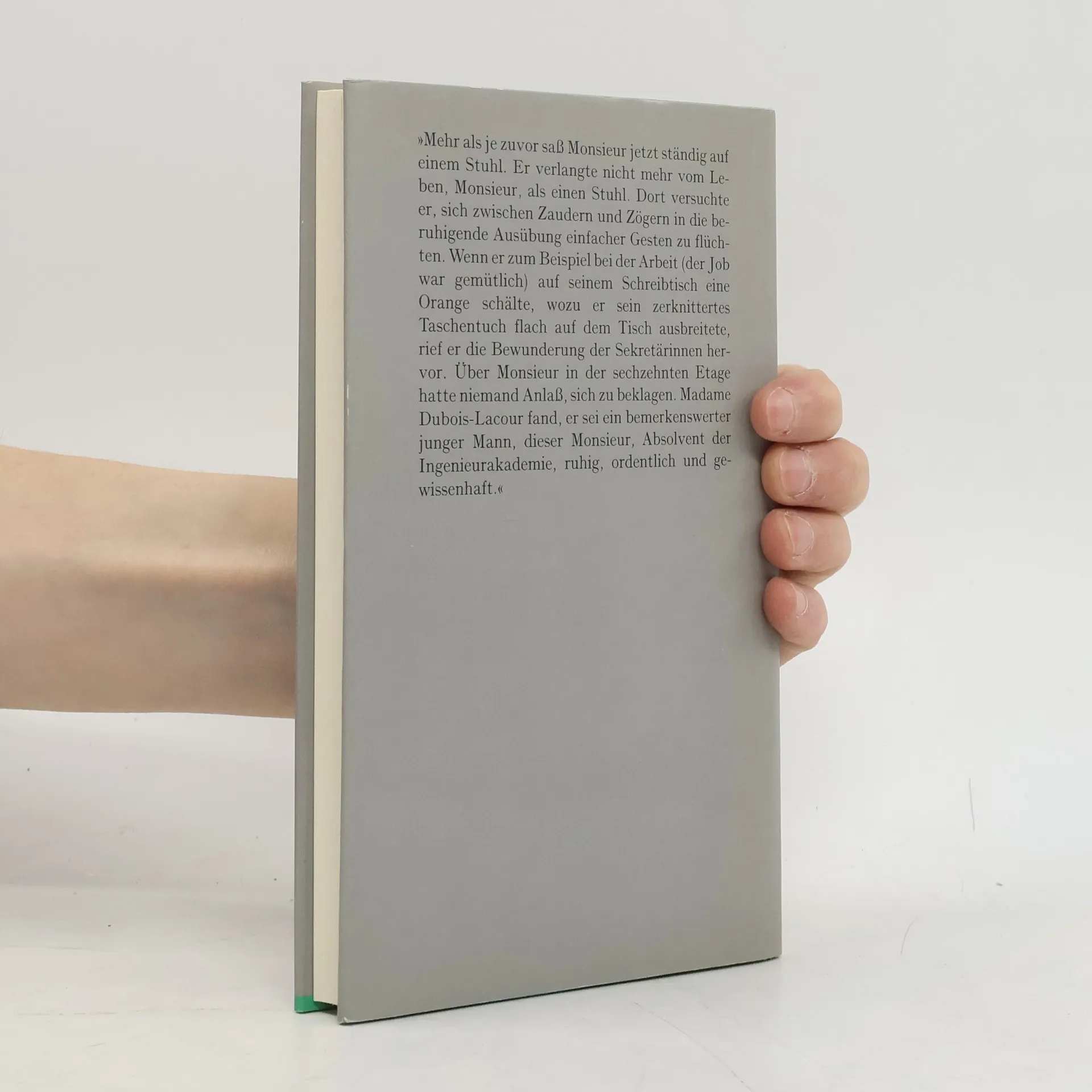 Monsieur ist 29 Jahre alt, Geschäftsführer bei Fiat-France, untadelig, sachlich, professionell. Er ist ein Mann ohne Widerstände, ohne Eigenschaften, ohne Konturen - dafür eckt er aber auch nirgendwo an. Toussaint hat hier ein kleines philosophisches Buch mit verblüffendem Witz und bestechender sprachlicher Brillanz geschrieben.