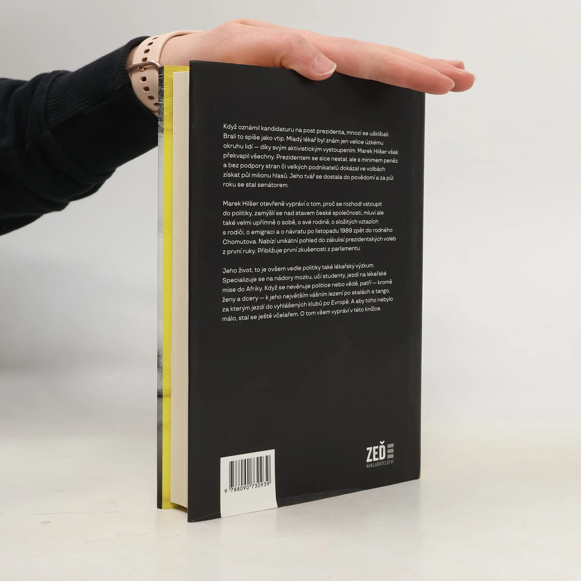 Když oznámil kandidaturu na post prezidenta, mnozí se ušklíbali. Brali to spíše jako vtip. Mladý lékař byl znám jen velice úzkému okruhu lidí díky svým aktivistickým vystoupením. Marek Hilšer však překvapil všechny. Prezidentem se sice nestal, ale s minimem peněz a bez podpory stran či velkých podnikatelů dokázal ve volbách získat půl miliónu hlasů. Jeho tvář se dostala do povědomí a za půl roku se stal senátorem. Marek Hilšer otevřeně vypráví o tom, proč se rozhodl vstoupit do politiky, zamýšlí se nad stavem české společnosti, mluví ale také velmi upřímně o sobě, o své rodině, o složitých vztazích s rodiči, o emigraci a o návratu po listopadu 1989 zpět do rodného Chomutova. Nabízí unikátní pohled do zákulisí prezidentských voleb z první ruky. Přibližuje první zkušenosti z parlamentu. Jeho život je ovšem vedle politiky také lékařský výzkum. Specializuje se na nádory mozku, učí studenty, jezdí na lékařské mise do Afriky. Když se nevěnuje politice nebo vědě, patří kromě ženy a dcery k jeho největším vášním lezení po skalách a tango, za kterým jezdí do vyhlášených klubů po Evropě. A aby toho nebylo málo, stal se ještě včelařem. O tom všem vypráví v knížce.