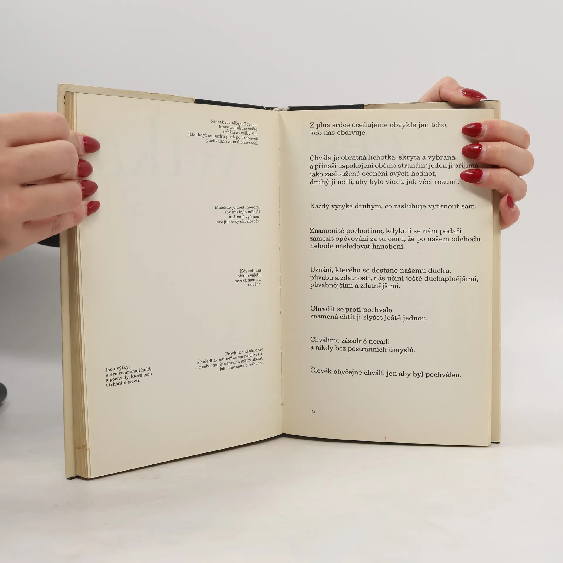 Vtipné, inteligentní a hlavně hluboce pravdivé jsou autorovy postřehy o životě a smrti, lásce a nenávisti i o lidském charakteru, a platí dnes stejně, jako před třemi sty lety. Výbor vede současného čtenáře k zamyšlení nad světem a společností z pohledu vzdělaného dvořana, který stálv samém centru soudobého politického a kulturního dění.