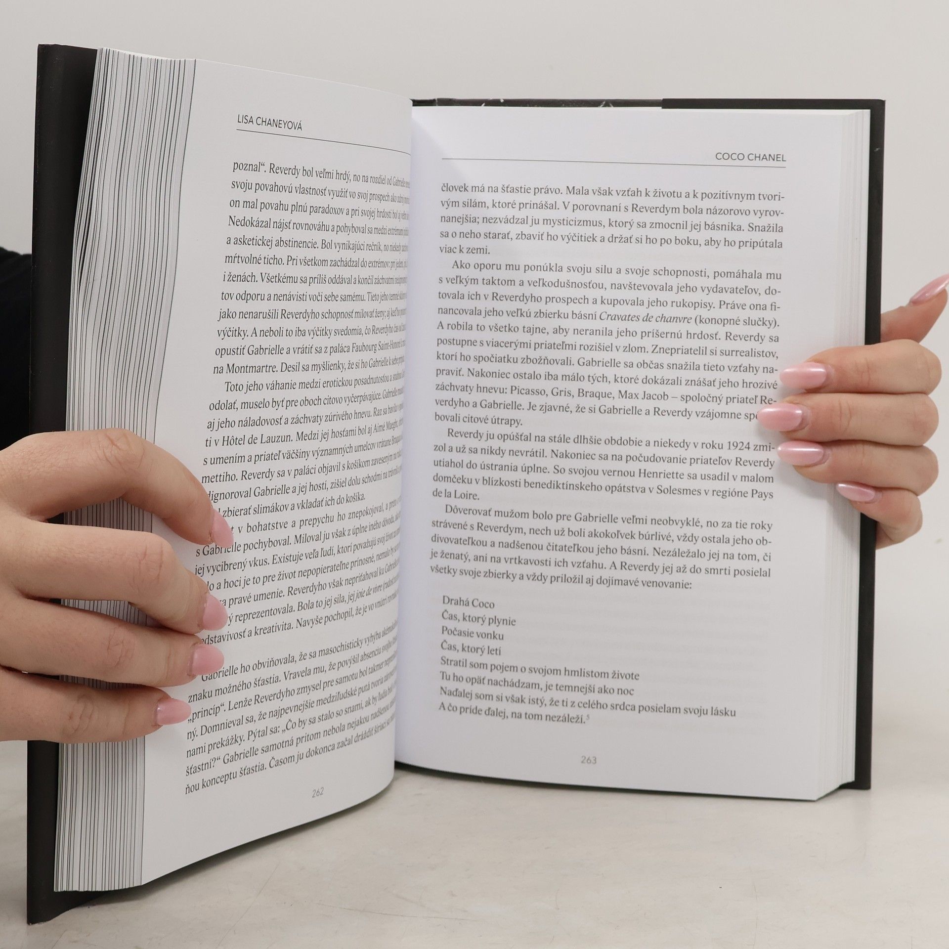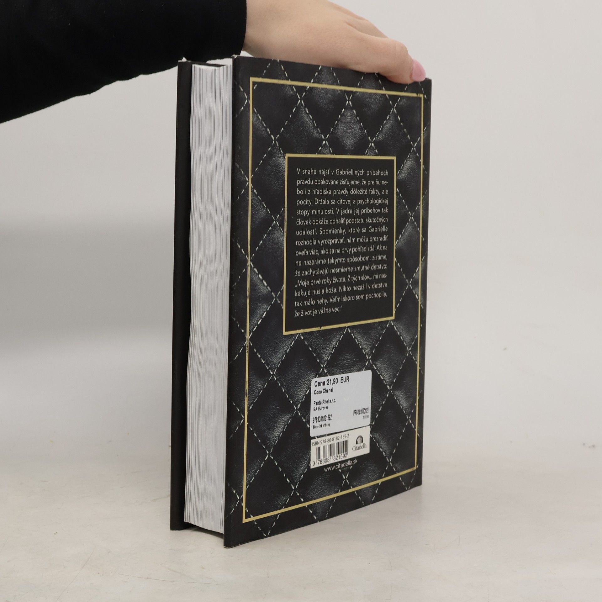 Gabrielle Chanelová (1883-1971) alebo Coco Chanel sa vyšvihla z chudobných pomerov a stala sa najvplyvnejšou módnou návrhárkou 20. storočia. V snahe nájsť v Gabrielliných príbehoch pravdu opakovane zisťujeme, že pre ňu neboli z hľadiska pravdy dôležité fakty, ale pocity. Držala sa citovej a psychologickej stopy minulosti. V jadre jej príbehov tak človek dokáže odhaliť podstatu skutočných udalostí. Spomienky, ktoré sa Gabrielle rozhodla vyrozprávať, nám môžu prezradiť oveľa viac, ako sa na prvý pohľad zdá. Ak na ne nazeráme takýmto spôsobom, zistíme, že zachytávajú nesmierne smutné detstvo: Moje prvé roky života. Z tých slov… mi naskakuje husia koža. Nikto nezažil v detstve tak málo nehy. Veľmi skoro som pochopila, že život je vážna vec.”