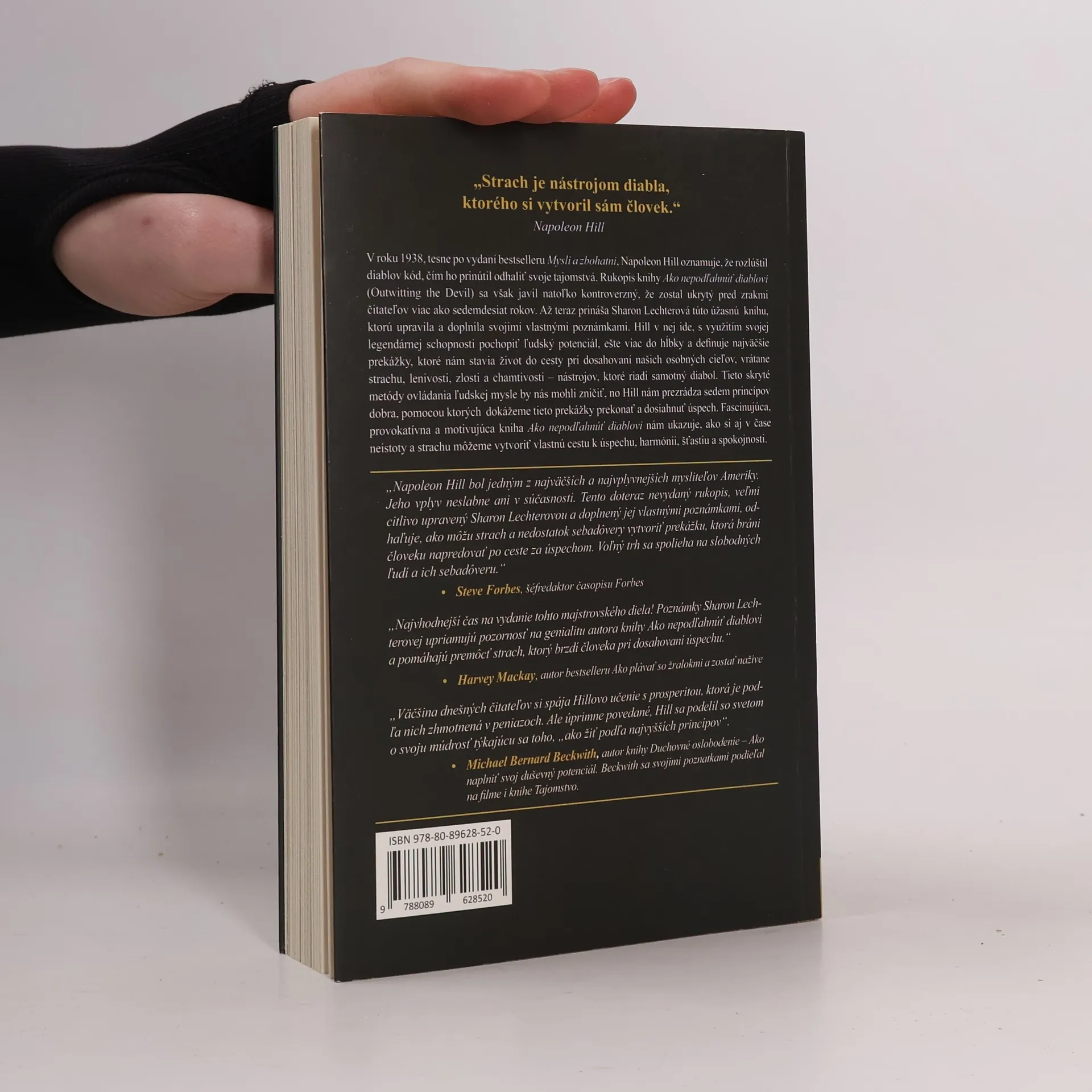 Čítanie tejto inšpiratívnej knihy vám pomôže dostať sa z letargie a preorientovať sa z negatívneho zmýšľania na pozitívne. Dostane vás na novú, šťastnú cestu jasnejšej, lepšej a úspešnejšej budúcnosti. Tak ako Hill, aj vy ste tu preto, aby ste zvládli svoj strach, a aby ste mu nedovolili ovládať vás. Musíte byť vášnivo zameraný na svoj cieľ a rozhodnúť sa, kým chcete byť a konať tak, aby ste dosiahli svoje túžby. Na ceste za objavovaním úžasných myšlienok Hilla pochopíte, že sa s nimi dokážete stotožniť a dokonca prekonať, ak naozaj chcete, pretože vás nič nemôže zastaviť. Hill správne povedal: „Vaše obmedzenia sú výtvorom vás samotných“. Táto kniha vám pomôže uvedomiť si, že ak využijete poznanie získané z rozhovorov s päťsto najúspešnejšími ľuďmi našich čias, ste schopný prelomov. Zistíte, či je diabol, s ktorým Hill vedie rozhovor, skutočný alebo imaginárny, podobne ako diabol alebo diabli, s ktorými možno zápasíte vy sami, vo svojom živote a životných skúsenostiach.