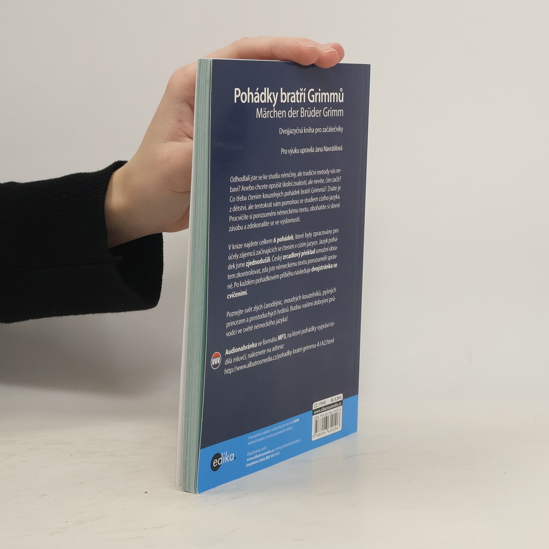 Pro začínající studenty němčiny - úroveň jazyka v publikaci A1/A2. Odhodlali jste se ke studiu němčiny, ale tradiční metody vás nebaví? Anebo chcete oprášit školní znalosti, ale nevíte, čím začít? Co třeba čtením kouzelných pohádek bratří Grimmů? Znáte je z dětství, ale tentokrát vám pomohou se studiem cizího jazyka. Procvičíte si porozumění německému textu, obohatíte si slovní zásobu a zdokonalíte se ve výslovnosti. V knize najdete celkem 6 pohádek, které byly zpracovány pro účely zájemců začínajících se čtením v cizím jazyce. Jazyk pohádek jsme zjednodušili. Český zrcadlový překlad umožní obratem zkontrolovat, zda jste německému textu porozuměli správně. Po každém pohádkovém příběhu následuje dvojstránka se cvičeními. Poznejte svět zlých čarodějnic, moudrých kouzelníků, pyšných princezen a prostoduchých hrdinů. Budou vašimi dobrými průvodci ve světě německého jazyka!