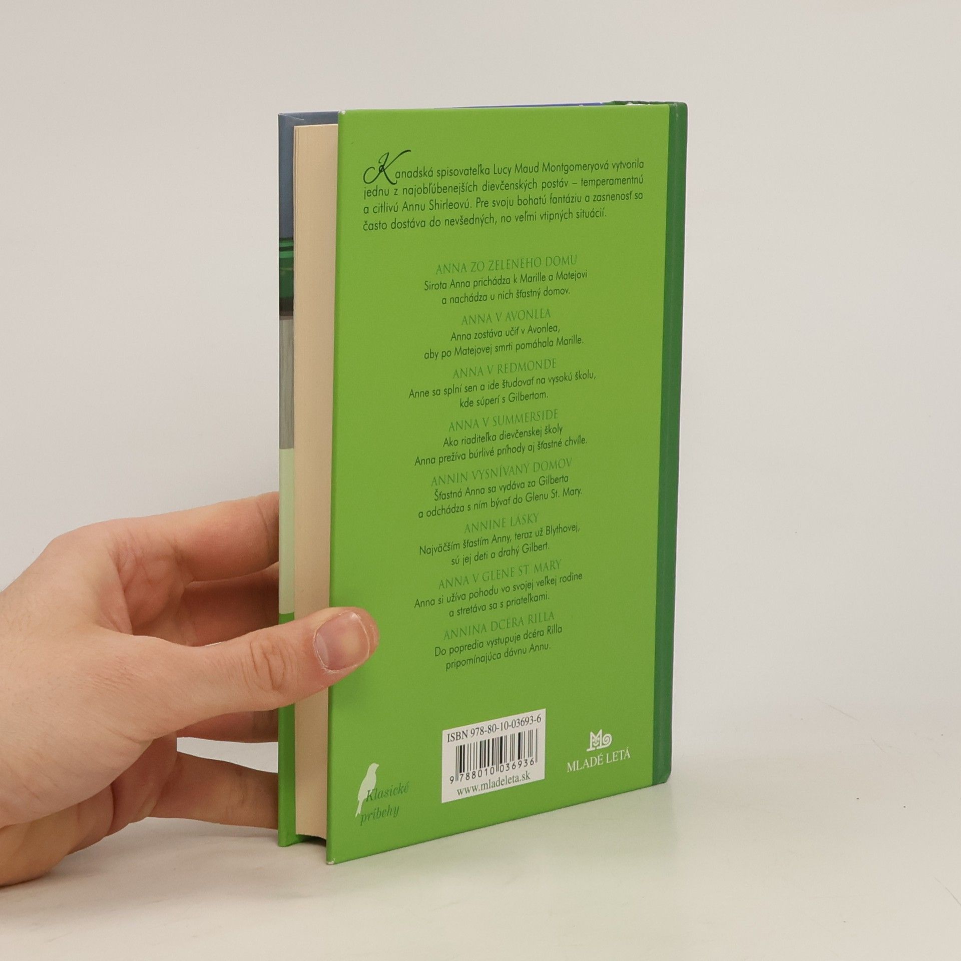 Annu Shirleyovú z knihy Lucy Maud Montgomeryovej poznajú čitatelia na celom svete. Červenovlasá jedenásťročná sirota Anna sa omylom dostane do opatery postarších súrodencov Mateja a Marilly. Mateja si získa okamžite svojím hĺbavým štebotaním, Marillu o čosi neskôr ťažkým osudom a svojským správaním. Okrem bujnej fantázie a živého ducha má výbušnú povahu a neustále kopí chybu na chybu. Nájsť si priateľov a podmaniť srdcia vrstovníkov i susedov sa jej celkom iste podarí. Bláznivé dobrodružstvá Anny zo Zeleného domu, ktoré pri tom zažije, vyčaria úsmev na tvári aj tomu najväčšiemu mrzútovi. Prežite ich spolu s ňou v novom vydaní tohto svetoznámeho románu.