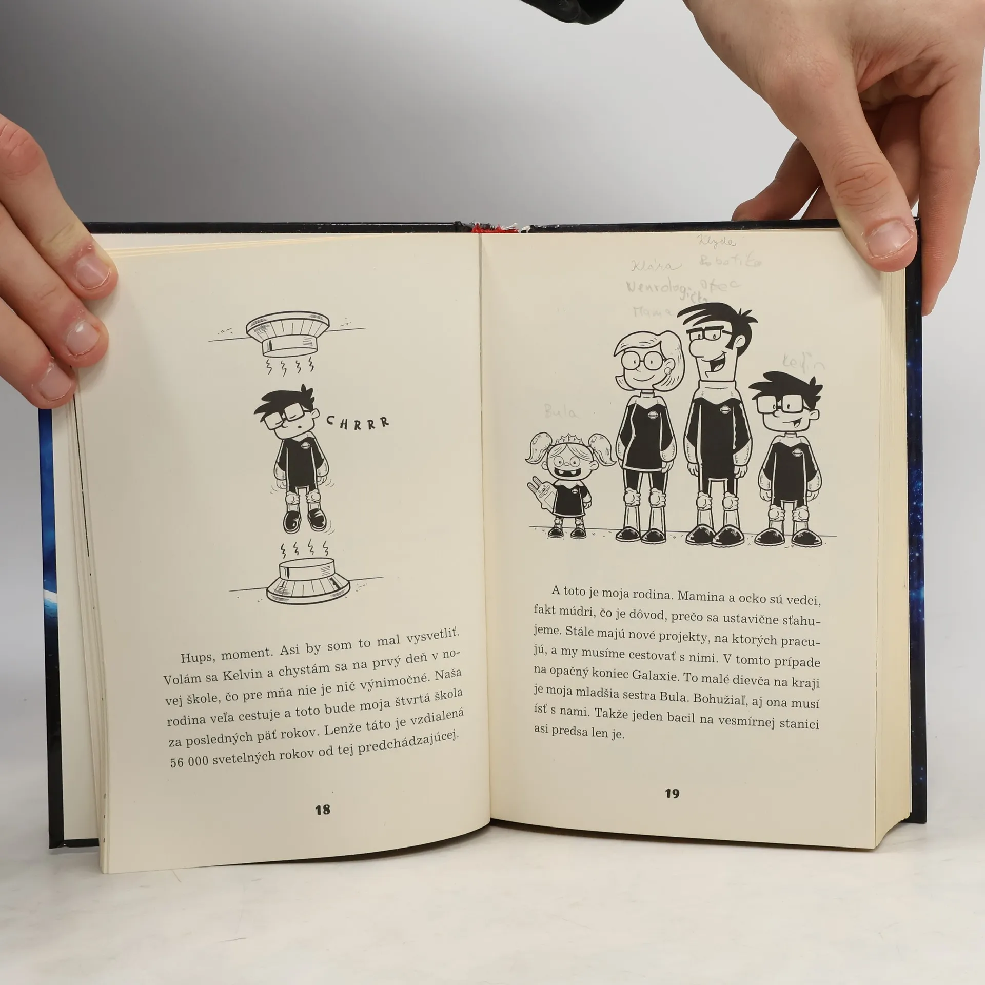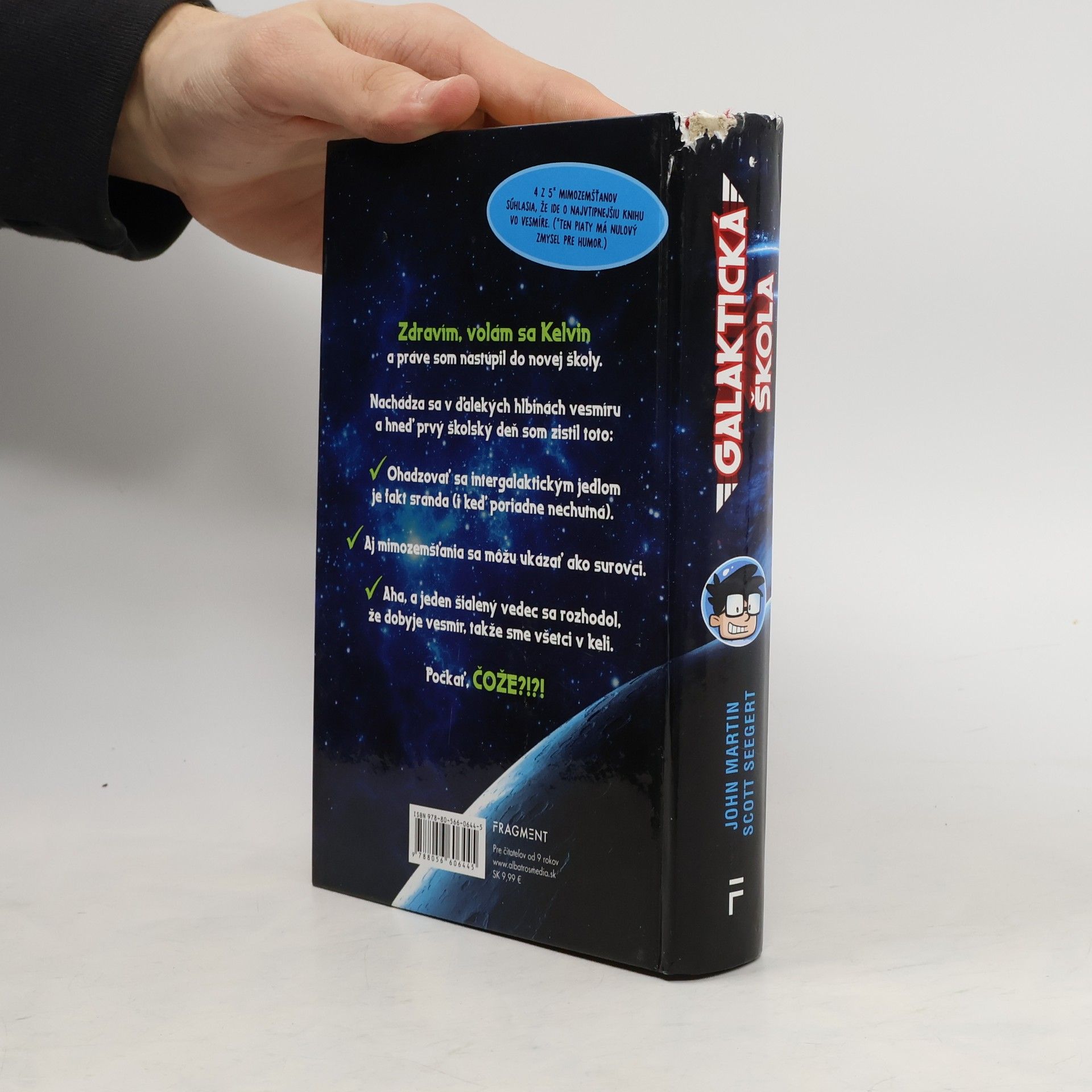 Kelvin Klosmo nie je len nový žiak v škole, je nový žiak v galaktickej škole v hlbinách vesmíru! Ako syn dvoch najväčších géniov na Zemi má byť najmúdrejším chalanom v celom vesmíre. Alebo si to aspoň všetci myslia. A tak Kelvin možno trochu klamal o svojej genialite, aby lepšie zapadol medzi ostatných. A možno sa jeden šialený vedec chystá ovládnuť vesmír, pokiaľ mu v tom Kelvin nezabráni. Možno je osud všetkých spečatený. Aspoň si Kelvin už nebude musieť robiť starosti s domácou úlohou z matiky.