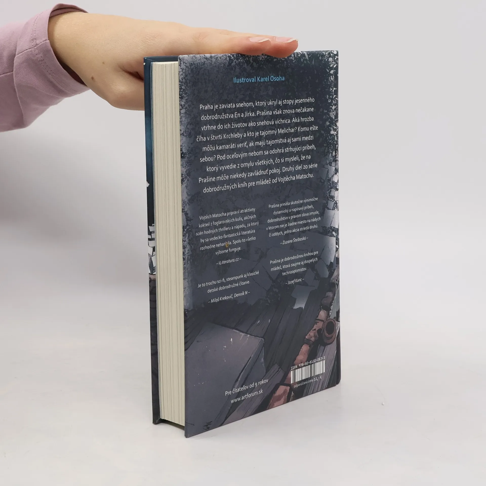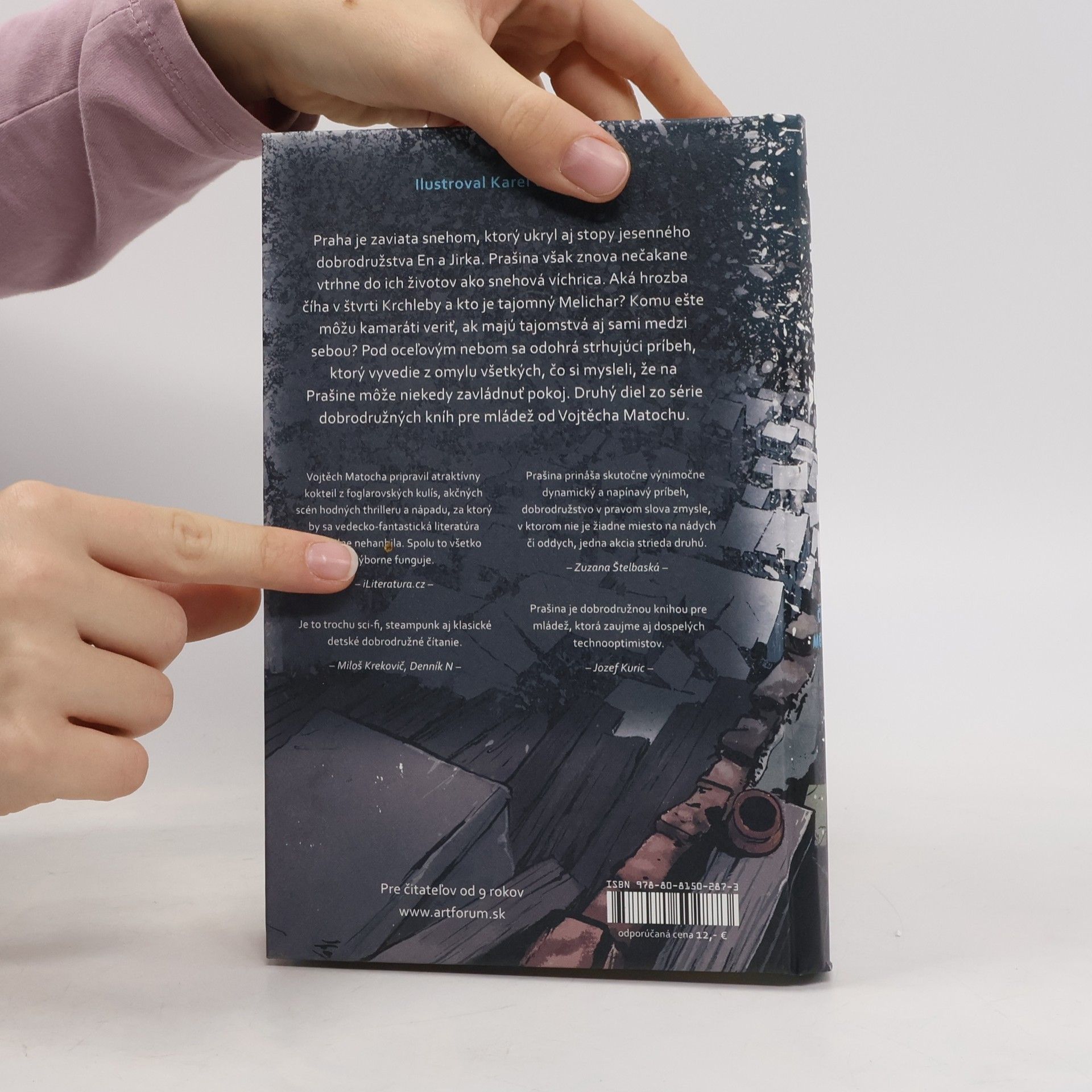 Praha je zaviata snehom, ktorý ukryl akékoľvek stopy jesenného dobrodružstva Jirka a En. Prašina však znova nečakane vtrhne do ich životov ako snehová víchrica. Aká hrozba číha v prašinskej štvrti Krchleby a kto je tajomný Melichar? Do vzťahu medzi Jirkom a En sa vkráda nedôvera a pochybnosti. Komu ešte môžu veriť, keď aj tí najbližší majú pred nimi tajnosti? Pod oceľovým nebom sa odohrá strhujúci príbeh, ktorý vyvedie z omylu všetkých, čo si mysleli, že na Prašine môže niekedy zavládnuť pokoj. Druhý diel zo série dobrodružných kníh pre mládež od Vojtěcha Matochu.