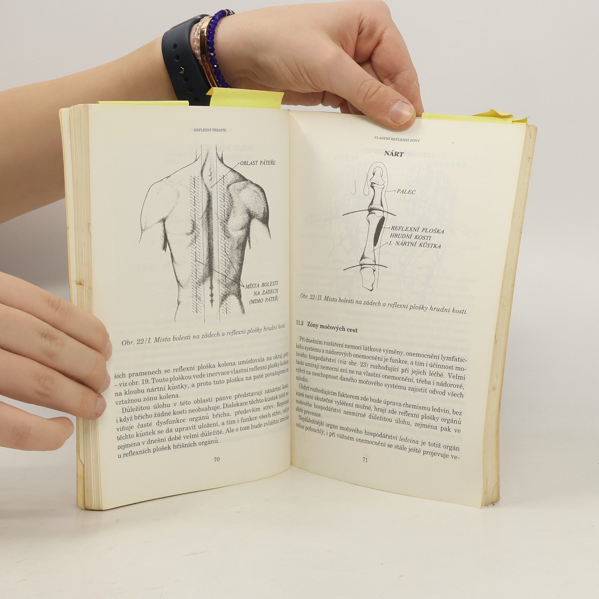 V této knize reflexní terapie využívá tlaku a masáží reflexních zón a ploch na chodidlech nohou. Reflexní plošky jsou snadno určitelné, lze si na nich okamžitě ověřit správnost jejího určení i přibližný stav příslušného orgánu. Účinek je okamžitý, což má obrovský význam při bolestech, akutních potížích a při první pomoci. RT lze úspěšně využít jako diagnostické metody pro hrubší diagnozu - pro prevenci naprosto dostačující. Obálku navrhla Brigitte Silná - Gomoluch. Ilustrace Magdalena Martínková. Foto Zdeněk Lhoták a Jaroslav Celuch. 1. vydání.... celý text