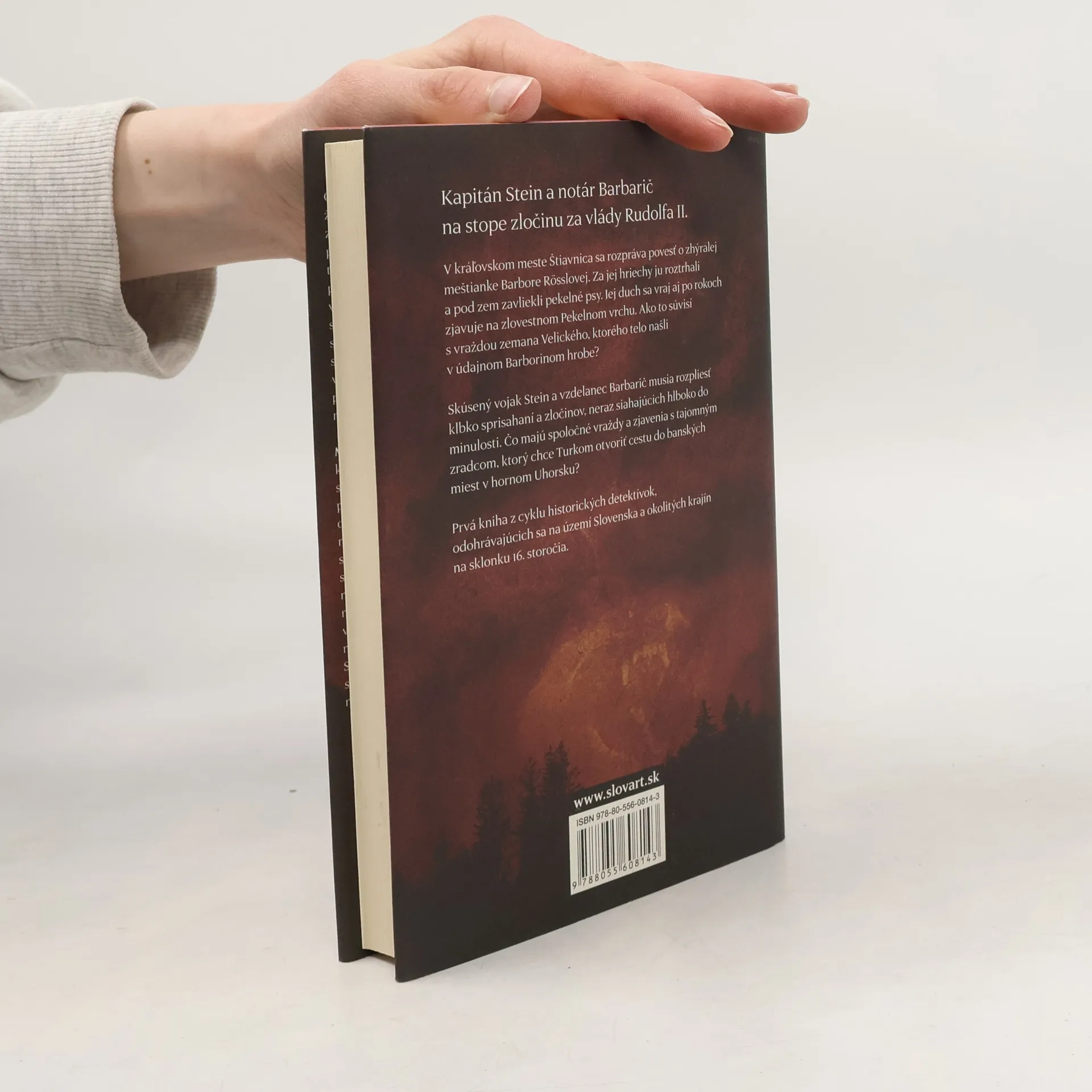 Historická detektívka. Prvý prípad kapitána Steina a notára Barbariča, ktorí sú na stope zločinu v habsburskom cisárstve za vlády Rudolfa II. Na konci 16. storočia zúri v kresťanskom pohraničí vojna s Osmanskou ríšou. Turci sa pokúšajú preniknúť k bohatým banským mestám v hornom Uhorsku. Vojnového veterána Steina vyšlú do Štiavnice odhaliť zradcu, ktorý sa chystá nepriateľom ukázať tajnú cestu do dobre opevneného mesta. Pátranie ešte skomplikuje vražda miestneho šľachtica. Stein musí spojiť sily s mestským notárom Matejom Barbaričom, aby rozplietol klbko sprisahaní a zločinov, z ktorých mnohé siahajú hlboko do minulosti. Zdá sa, že všetko súvisí so zlorečeným Pekelným vrchom – mnohí veria, že sa na ňom zjavuje duch zhýralej meštianky, a po nociach sa tam rozlieha vytie psov, čo strážia bránu do záhrobia.