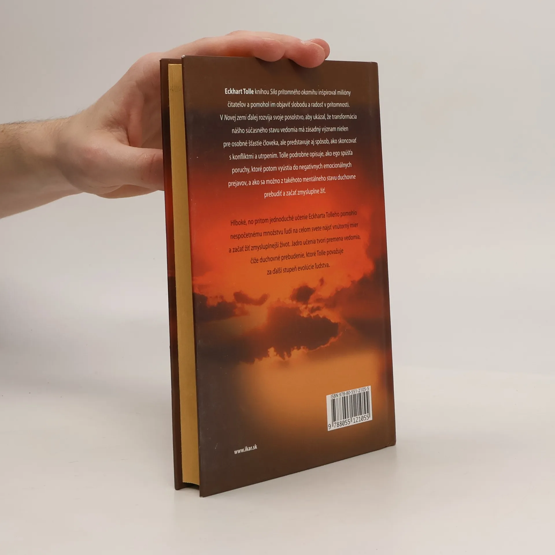 Eckhart Tolle knihou Sila prítomného okamihu inšpiroval milióny čitateľov a pomohol objaviť slobodu a radosť v prítomnosti. V Novej zemi ďalej rozvíja svoje posolstvo, aby ukázal, že transformácia nášho súčasného stavu vedomia má zásadný význam nielen pre osobné šťastie človeka, ale predstavuje aj spôsob, ako skoncovať s konfliktmi a utrpením. Tolle podrobne opisuje, ako ego spúšťa poruchy, ktoré potom vyústia do negatívnych emocionálnych prejavov, a ako sa možno z takéhoto mentálneho stavu duchovne prebudiť a začať zmysluplne žiť. Hlboké, no pritom jednoduché učenie Eckharta Tolleho pomohlo nespočetnému množstvu ľudí na celom svete nájsť vnútorný mier a začať žiť zmysluplnejší život. Jadro učenia tvorí premena vedomia, čiže duchovné prebudenie, ktoré Tolle považuje za ďalší stupeň evolúcie ľudstva