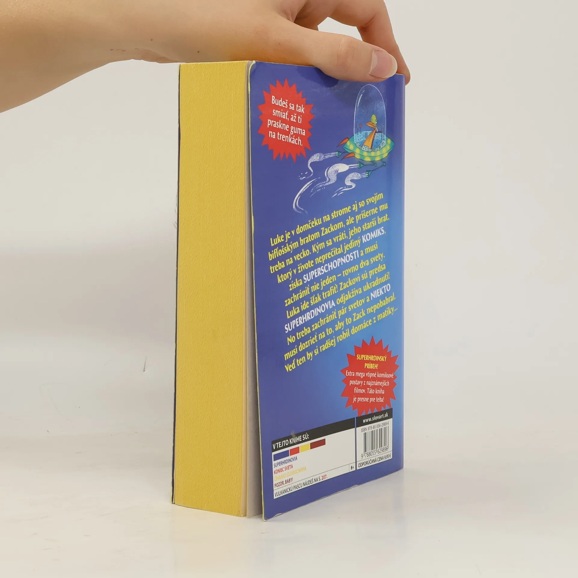 Ak miluješ superhrdinov tak ako Luke, pri čítaní tejto knihy nebudeš veriť tomu, ako s ním vesmír vybabral. Luke bol jedného večera v domčeku na strome spolu so starším bratom Zackom, no musel si odskočiť. Keď sa vrátil, jeho brat, ktorý v živote neprečítal jediný komiks, mal zrazu superschopnosti a poslanie zachrániť nie jeden, ale rovno dva svety! Luka to poriadne ROZČÚLILO! Veď Zack vôbec NEMÁ RÁD komiksy! No pár svetov je v ohrození a NIEKTO musí dozrieť na to, aby to Zack nepobabral. Najmä keď ani nechce nosiť plášť, ako sa na správneho superhrdinu patrí!