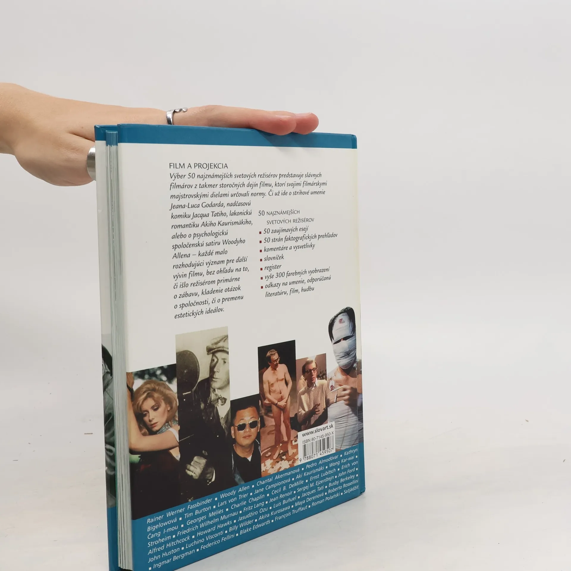 50 najznámejších režisérov od Chaplina až po Almodóvara. Kniha predstavuje slávnych filmárov z takmer storočných dejín filmu. Každá krátka esej nielenže hodnotí umeleckú tvorbu režiséra, ale poskytuje aj pohľad na jeho osobité zaobchádzanie s filmovými prostriedkami. Na strane faktov je krátky životopis daného režiséra, zaujímavosti o hercoch, producentoch, kameramanoch a skladateľoch filmovej hudby, ako aj odporúčané filmy a literatúra. Kniha je doplnená slovníčkom odborných výrazov filmového jazyka a podrobným registrom osôb a diel.