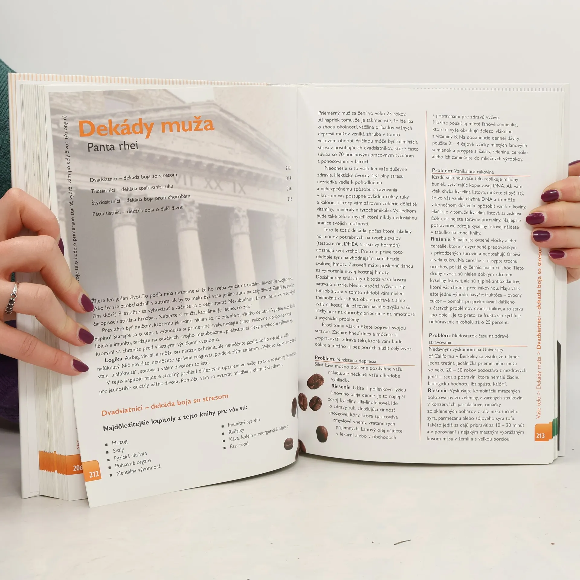 V tejto knihe ide o zdravie, pretože stojí nad úspechom: ak nie ste zdravý, úspech nemôžete dosiahnuť ani prežívať. Táto kniha vám ukáže, ako prežiť, ako byť zdravý, ako si užiť úspech. Kniha, ktorá vás pobaví a ktorá vám pomôže, obsahuje: informácie o vašom tele, o ktorých ste doteraz netušili, tipy, ako prežiť nástrahy zvonka aj zvnútra, rozhovory so známými a zaujímavými mužmi a s odbornými konzultantmi, grafy, tabuľky a obrázky, ktoré si budete dlho pamätať, tabuľky obsahu vitamínov a minerálov v potravinách, ktoré konečne nemusíte vážiť.