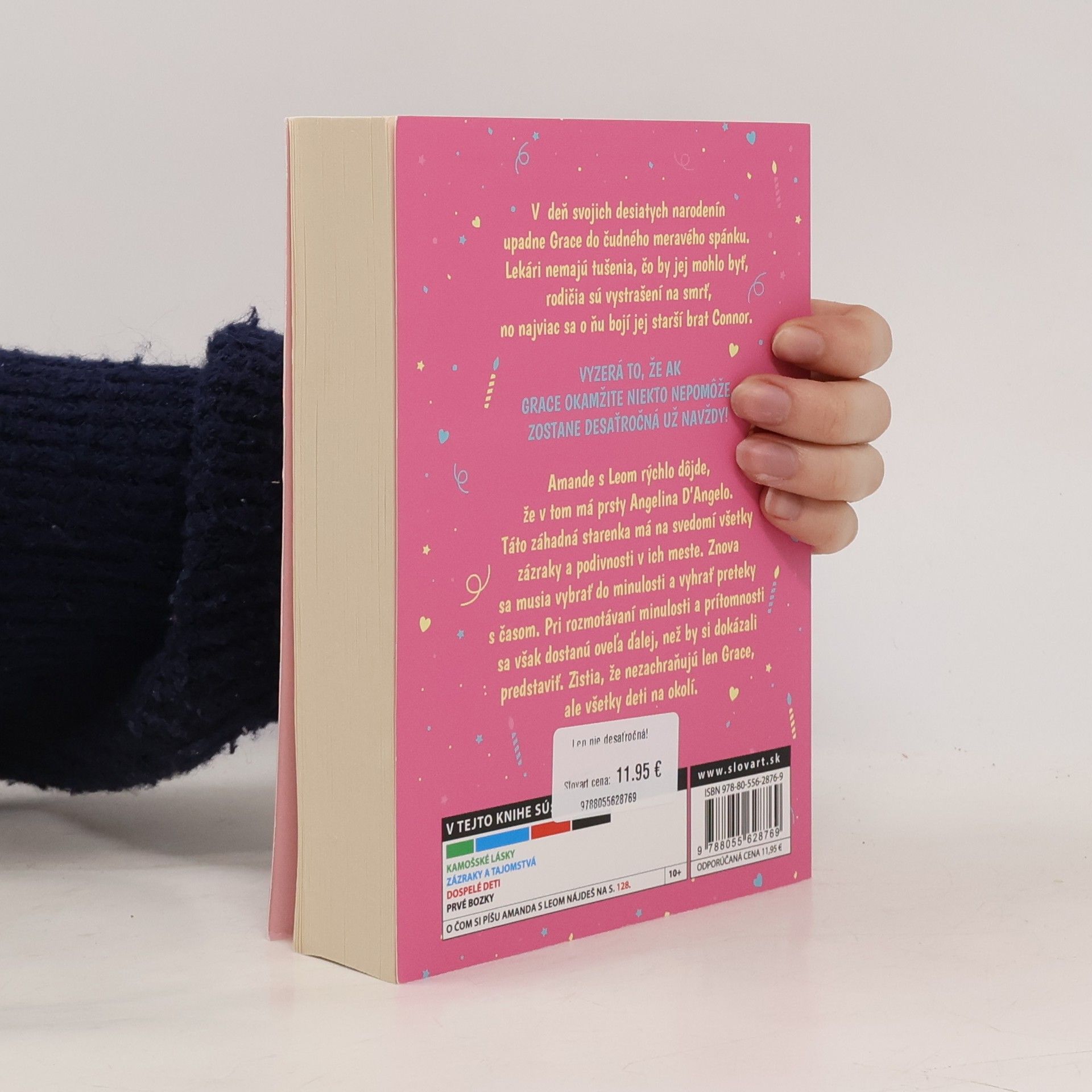 Kniha Len nie desaťročná! je voľné pokračovanie kníh Zakliate jedenáste narodeniny, Konečne dvanásťročná a Za trest trinásťročná. Grace upadla v deň svojich desiatych narodenín do čudného meravého stavu a Amanda s Leom si rýchlo uvedomia, že v tom má prsty Angelina D'Angelo - záhadná stará pani, ktorá má na svedomí všetky zázraky v ich mestečku na konci sveta. No Angelina nemá vo zvyku hovoriť ľuďom celú pravdu, a tak sa im len vďaka kamarátom - vrátane Rory a Tary - podarí poskladať celý príbeh. Musia sa vybrať do minulosti a vyhrať preteky s časom. Pri rozmotávaní záhad sa však dostanú oveľa ďalej, než by si dokázali predstaviť. Zistia totiž, že nezachraňujú len Grace. V knihách Wendy Mass je možné všetko a náhody neexistujú. No pamätaj... keď raz vstúpiš, možno už nebudeš chcieť odísť. Koho môže kniha zaujať: Dievčatá, ktoré vedia, aké to je, mať kamarátov, ktorí ťa zachránia, aj keď si začarovaná a musia kvôli tebe cestovať časom.