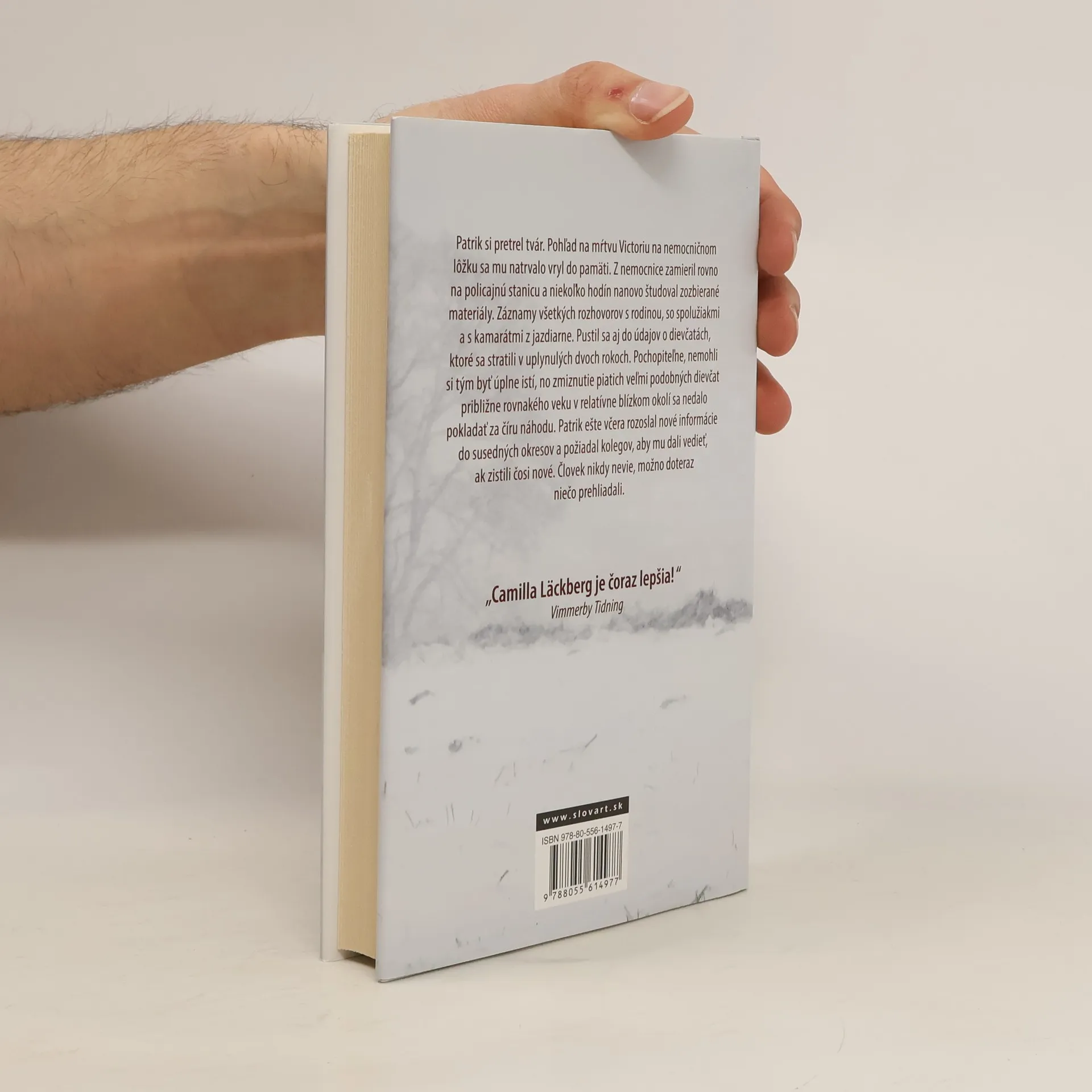 Camilla Läckberg vyštudovala ekonómiu a spočiatku v tomto odbore pracovala. Vždy sa však túžila stať spisovateľkou a dnes sa radí medzi najúspešnejšie švédske autorky krimi románov. Je január a Fjällbacku drží v zovretí tuhý mráz. Cez zasnežený les sa k hradskej potáca polonahé dievča. Na ceste sa však ako blesk z jasného neba vynorí auto a šofér nestíha zabrzdiť. Keď Patrik Hedström a jeho kolegovia dostanú správu o nešťastí, dievča je už identifikované. Zmizlo pred štyrmi mesiacmi cestou z tamojšej jazdeckej školy a odvtedy ho nikto nevidel. Podľa výsledkov pitvy bola dievčina vystavená mučeniu, a ak polícia prípad rýchlo neobjasní, hrozí, že podobný osud čaká aj iné mladé ženy. Zdroj: slovart.sk