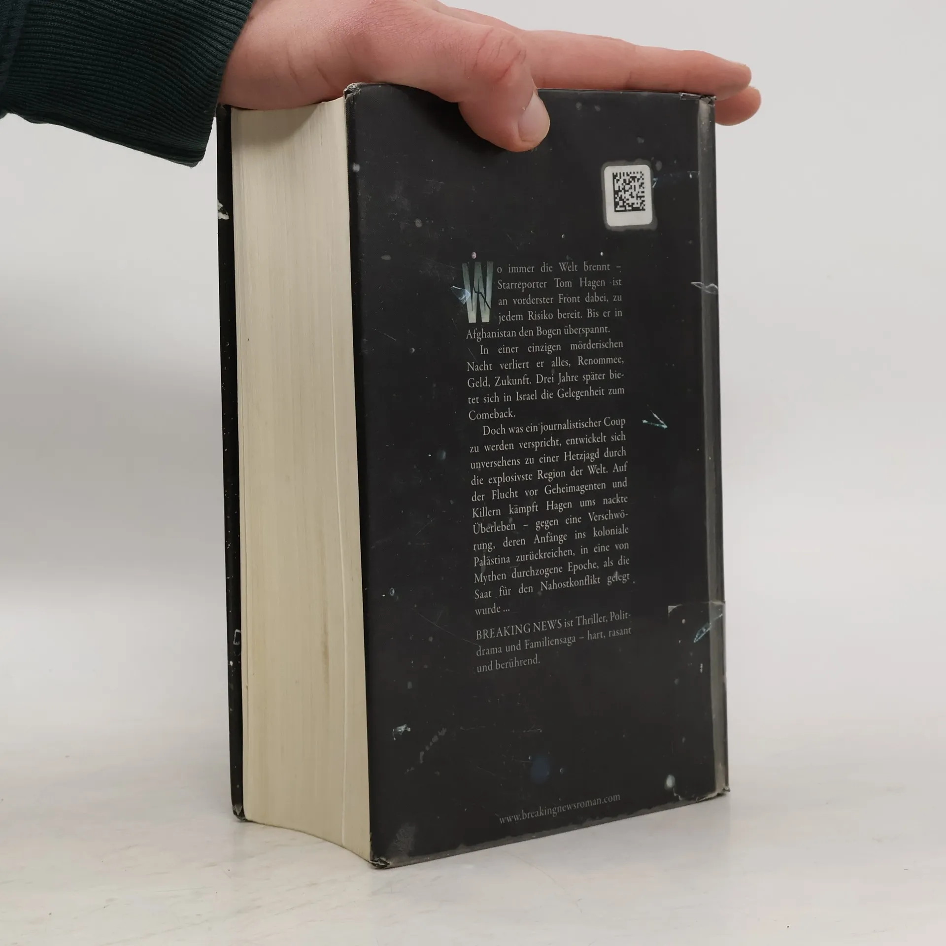 Thriller, Politdrama und Familiensaga – hart, rasant und berührend. Tom Hagen, gefeierter Star unter den Krisenberichterstattern, ist nicht zimperlich, wenn es um eine gute Story geht. Die Länder des Nahen Ostens sind sein Spezialgebiet, seine Reportagen Berichte aus der Hölle. Doch in Afghanistan verlässt ihn sein Glück. Eine nächtliche Geiselbefreiung endet im Desaster. Hagens Ruf ist ruiniert, verzweifelt kämpft er um sein Comeback. Drei Jahre später bietet sich die Gelegenheit in Tel Aviv, als ihm Daten des israelischen Inlandgeheimdienstes zugespielt werden. Hagen ergreift die Chance - und setzt ungewollt eine tödliche Kettenreaktion in Gang... Breaking News ist ein mitreißender Thriller vor dem Hintergrund einer epischen Saga. Zwei Familien wandern Ende der zwanziger Jahre nach Palästina ein – in eine von Legenden, Kämpfen und Hoffnungen beherrschte neue Welt, wo Juden, Araber und britische Kolonialherren erbittert um die Vorherrschaft ringen. Bis in die Gegenwart, über Generationen hinweg, spiegeln und prägen beide Familien Israels atemlose Entwicklung. Als Hagen in der jungen Ärztin Yael Kahn eine unerwartete Verbündete findet, erkennt er, dass auch sein Schicksal eng mit der Geschichte des Landes verbunden ist. Doch mit Yael an seiner Seite gehen die Probleme erst richtig los.