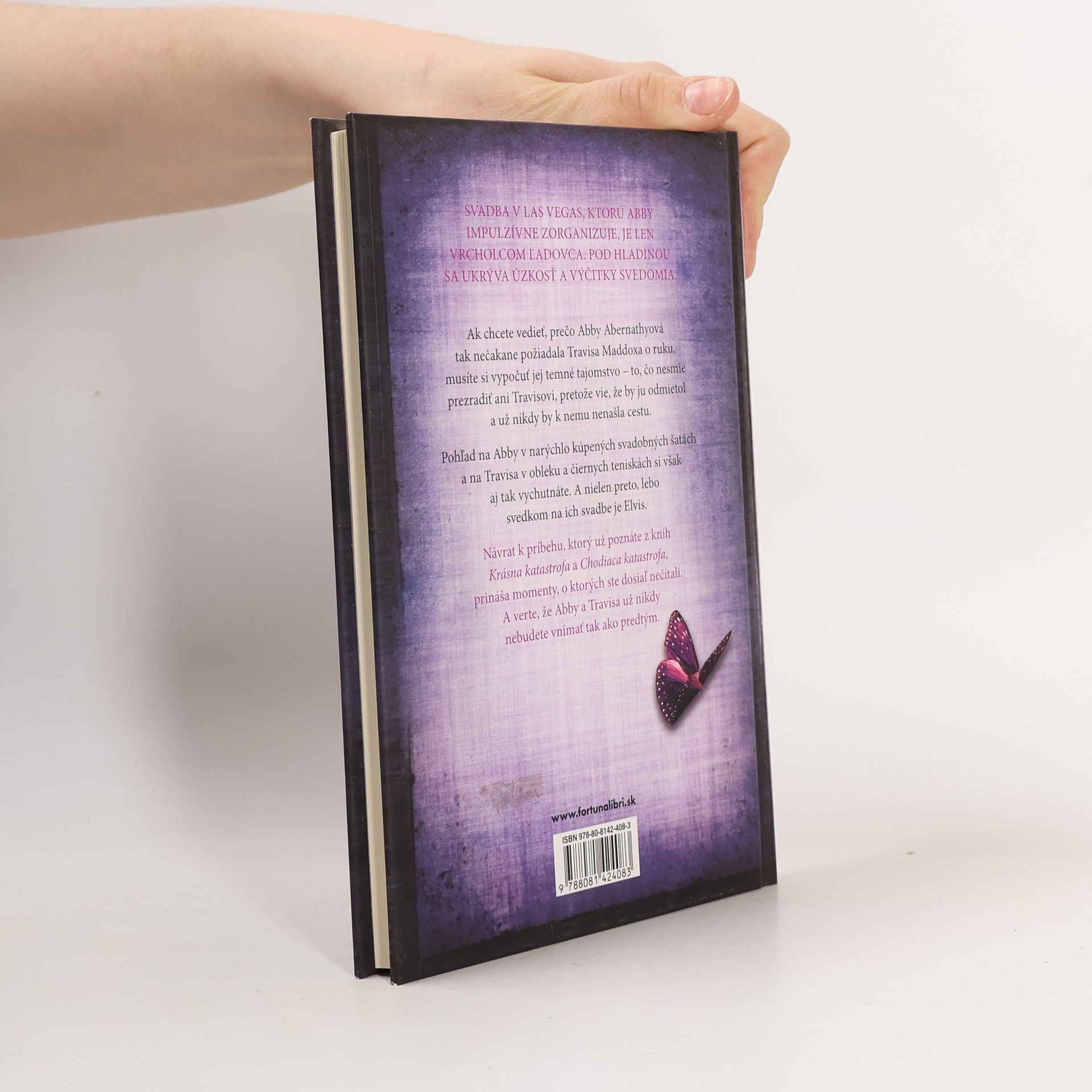 Svadba v Las Vegas, ktorú Abby impulzívne zorganizuje, je len vrcholom ľadovca. Pod hladinou sa ukrýva úzkosť a výčitky svedomia. Ak chcete vedieť, prečo ABBY ABERNATHYOVÁ tak nečakane požiadala TRAVISA MADDOXA o ruku, musíte si vypočuť jej temné tajomstvo – to, čo nesmie prezradiť ani Travisovi, pretože vie, že by ju odmietol a už nikdy by k nemu nenašla cestu. Pohľad na Abby v narýchlo kúpených svadobných šatách a na Travisa v obleku a čiernych teniskách si však aj tak vychutnáte. A nielen preto, lebo svedkom na ich svadbe je Elvis. Návrat k príbehu, ktorý už poznáte z kníh Krásna katastrofa a Chodiaca katastrofa, prináša momenty, o ktorých ste dosiaľ nečítali. A verte, že Abby a Travisa už nikdy nebudete vnímať tak ako predtým.