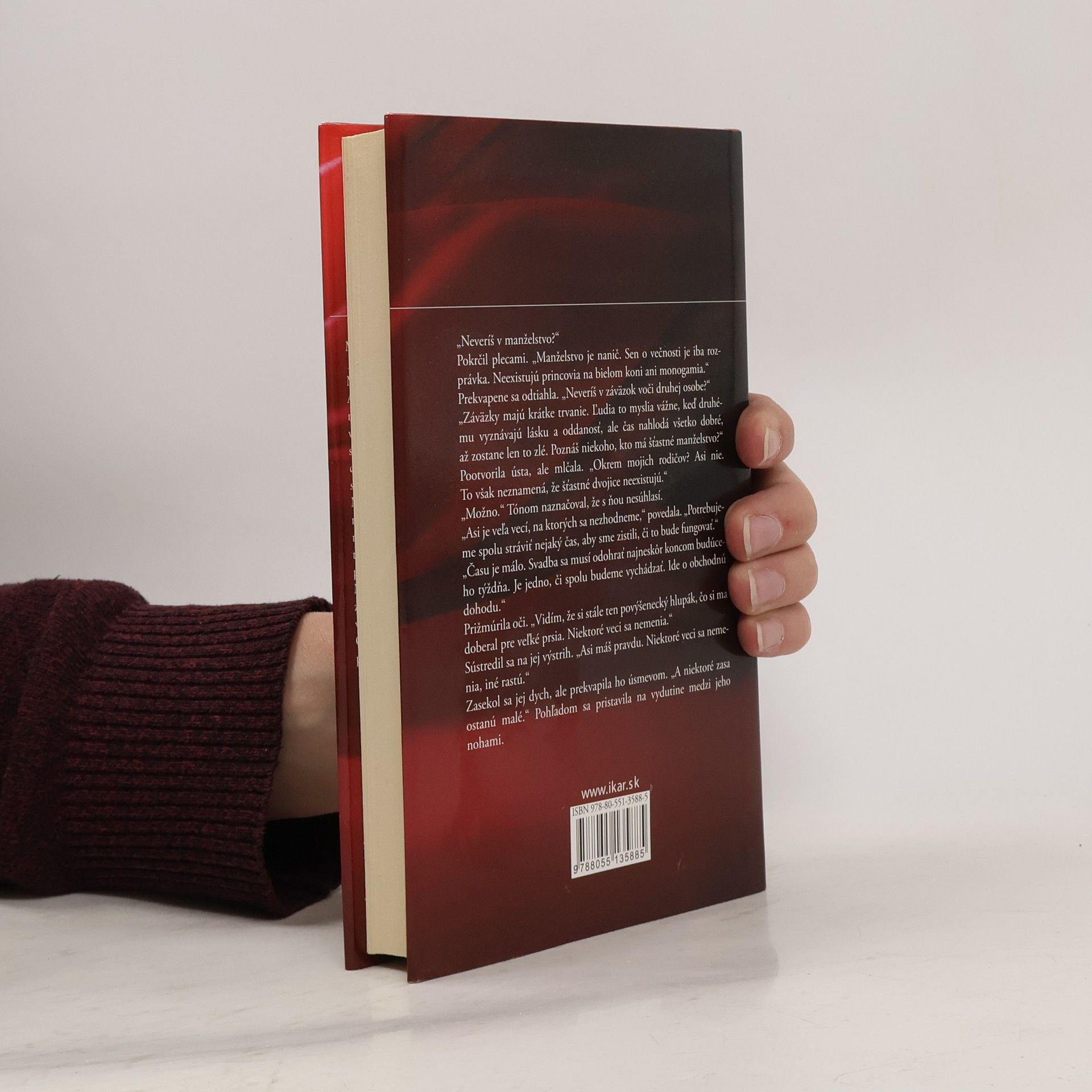 Majiteľka kníhkupectva Alexa Maria McKenzieová chce zachrániť rodinné sídlo, a preto sa musí čo najrýchlejšie vydať. Láska ju však akosi obchádza. Ale ani vo sne si nepredstavovala, že jej osud privedie do cesty brata najlepšej priateľky, ktorý jej v detstve zlomil srdce. Miliardár Nicholas Ryan neverí v manželstvo, no ak chce zdediť strýkovu firmu, musí sa čo najskôr oženiť. Keď sa dozvie, že sestrina priateľka zúfalo potrebuje peniaze, urobí Alexe ponuku, aká sa jednoducho neodmieta. Manželstvo dôsledne podľa zmluvy – nijaké záväzky a najmä nijaké city. Rok to hádam vydržia, alebo nie? Osud však zamotá aj tie najpremyslenejšie plány...
