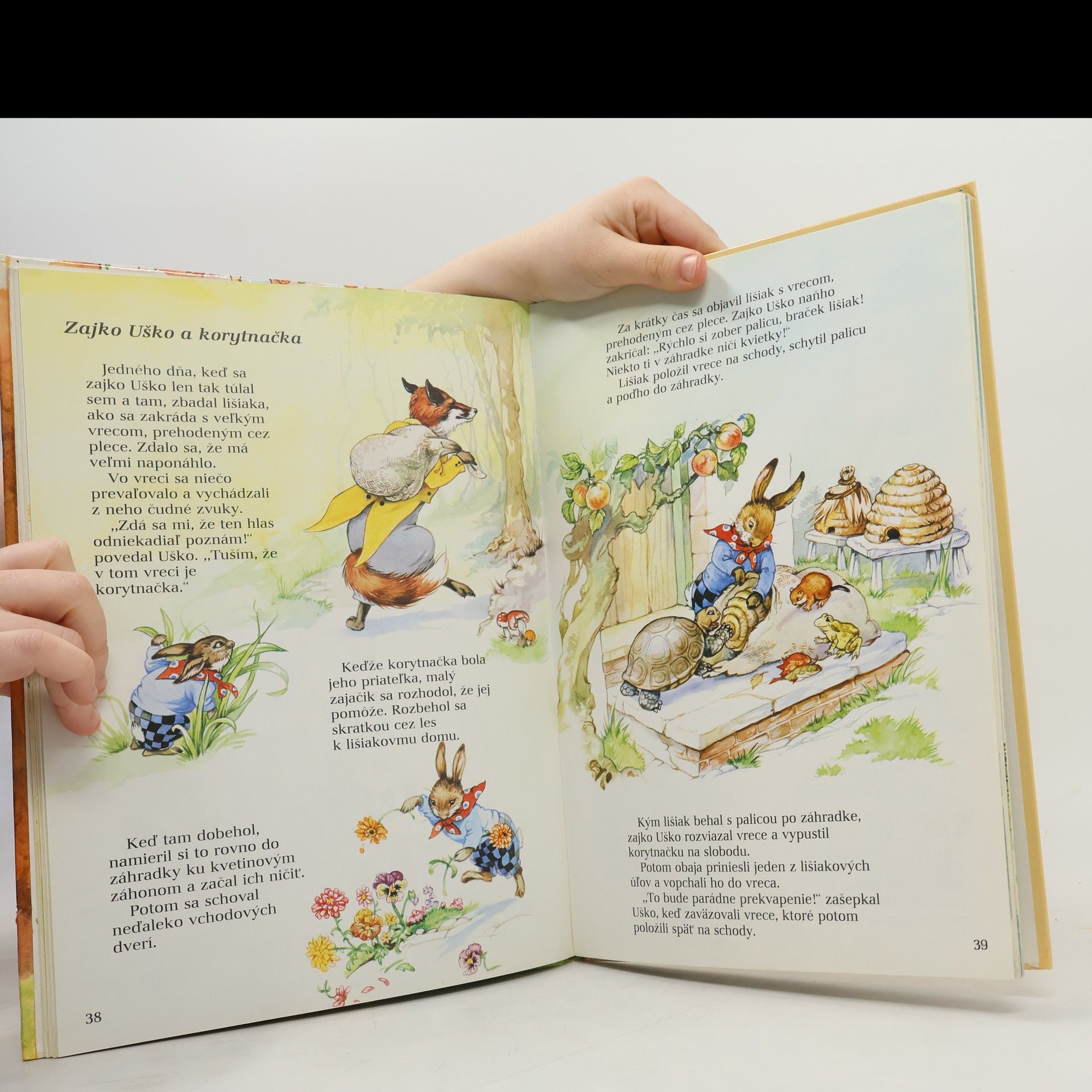 Príhody zajka Uška v príbehoch: Ako korytnačka dokázala všetkým svoju silu, Zajko Uško nakupuje, Zajko Uško a prefíkaný jastrab, Zajko Uško a lev, Zajko Uško jazdcom, Ako zajko lišiaka opäť prekabátil, Zajko Uško a lišiak, Zajko Uško a bábka zo smoly, Zajko Uško a korytnačka, Zajko Uško a lišiak na rybačke, Veľké preteky, Lišiak na poľovačke, Ako zajko Uško o chvost prišiel, Zajko Uško a medveď, Lišiak a hus, Mesiac v rybníku, Zajko Uško a krčah s medom, Ako vlk porušil zákon.