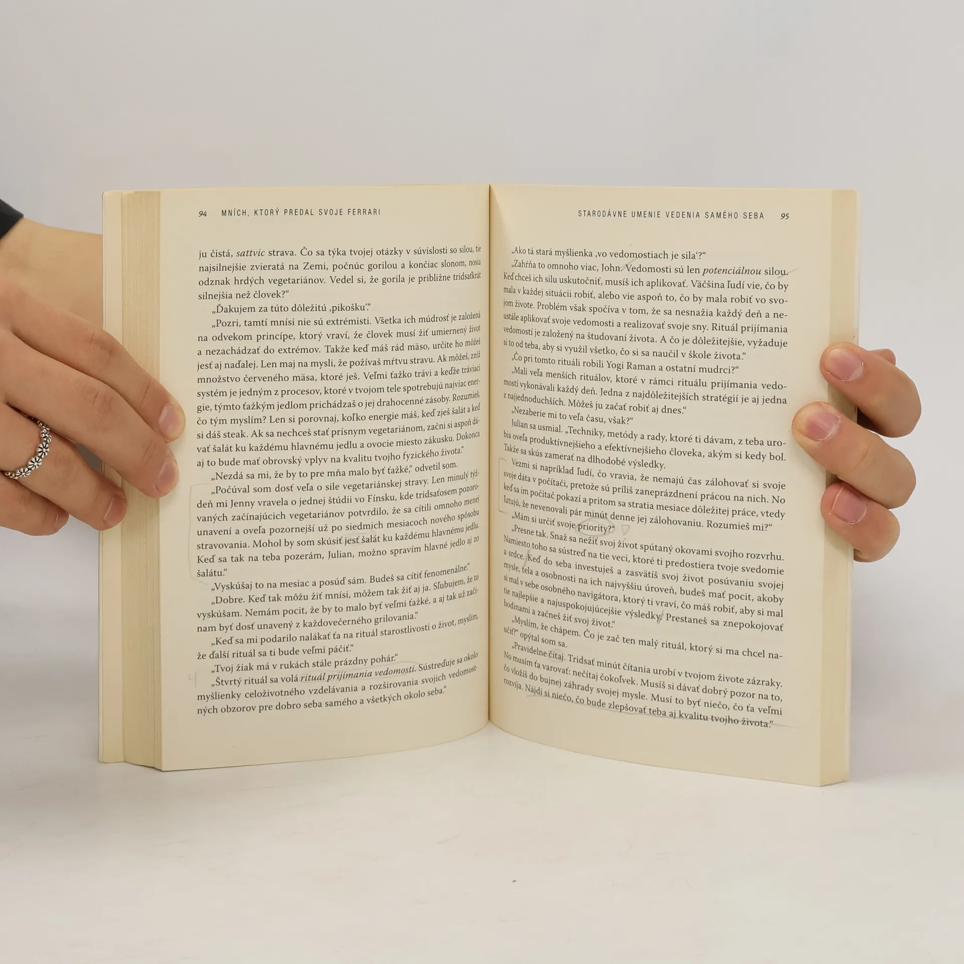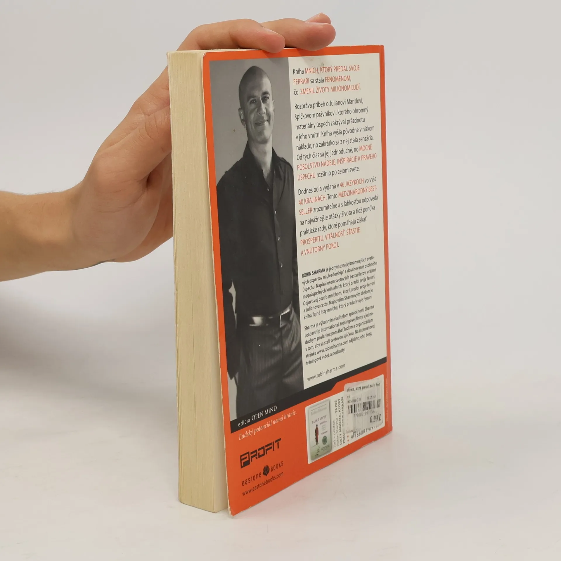 Mních, ktorý predal svoje Ferrari, je kniha, ktorá sa stala fenoménom. Vyšla pred desiatimi rokmi a odvtedy zmenila miliónom ľudí život. Rozpráva príbeh o Julianovi Mantlovi, špičkovom právnikovi, ktorého ohromný materiálny úspech zakrýval prázdnotu v jeho vnútri. Kniha vyšla pôvodne v nízkom náklade, no zakrátko sa z nej stala senzácia. Od tých čias sa jej jednoduché, no mocné posolstvo nádeje, inšpirácie a pravého úspechu rozšírilo po celom svete. Dodnes bola vydaná v 46 jazykoch vo vyše 40 krajinách. Tento medzinárodný bestseller zrozumiteľne a s ľahkosťou odpovedá na najvážnejšie otázky života a tiež ponúka praktické rady, ktoré pomáhajú získať prosperitu, vitálnosť, šťastie a vnútorný pokoj.