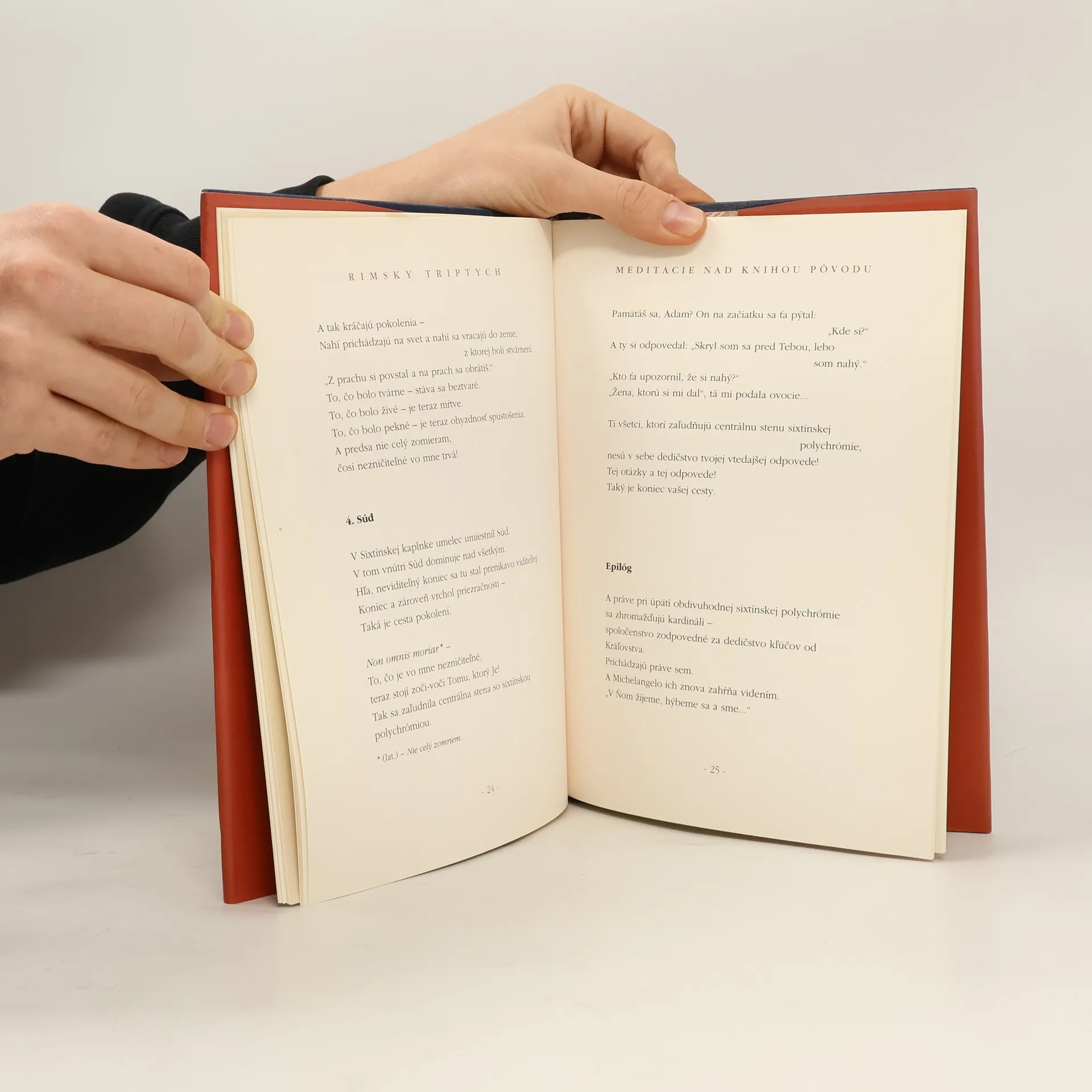 Pre Vydavateľstvo Dobrá kniha je veľkou poctou, že má možnosť ponúknuť vám jedinečné dielo Jána Pavla II. RÍMSKY TRIPTYCH. Je všeobecne známe, že pred zvolením za pápeža bol Karol Wojtyla plodným básnikom. Rímsky triptych je prvé básnické dielo, ktoré zverejnil pod pápežským menom Ján Pavol II. Obsahuje tri fascinujúce meditácie o kráse stvorenia, o Sixtínskej kaplnke a o Abrahámovi. Bibliofilské vydanie ozdobujú reprodukcie Michelangelových diel, faximile rukopisu Svätého Otca a text vyjadrujúci jeho potešenie zo slovenského vydania knihy.