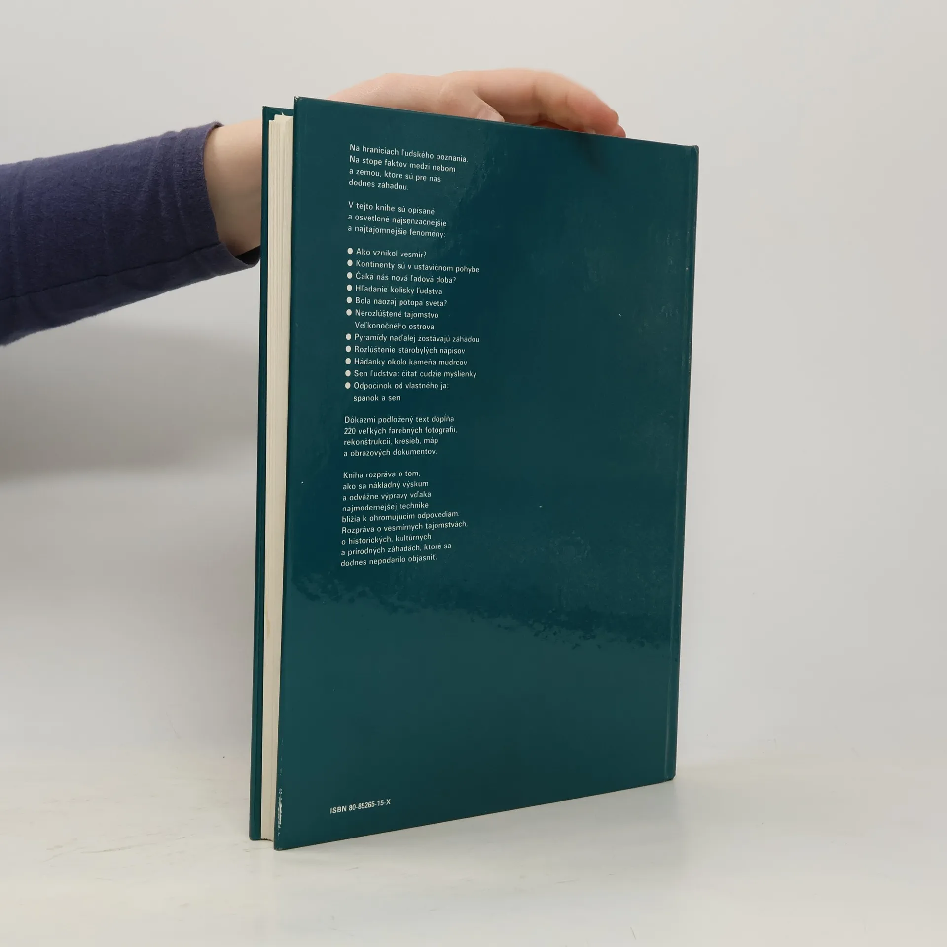 Populárno-náučná publikácia o nevysvetliteľných fenoménoch, záhadách, ktoré presahujú hranice ľudského poznania, a pod. Z obsahu: Bytosti, ktoré neexistujú, Vesmír je plný záhad, Zem nie je bez záhad, Keď prišiel na Zem život,...