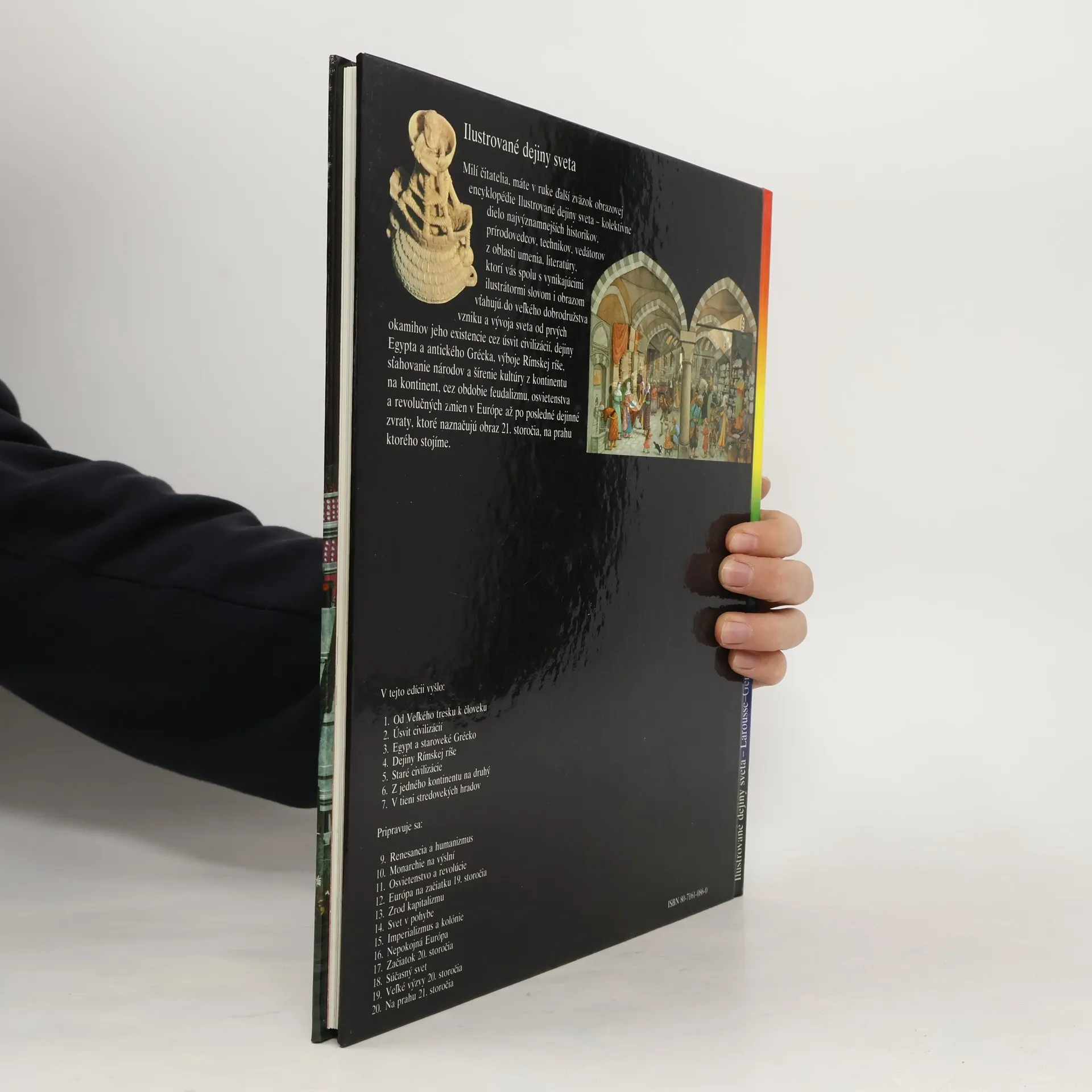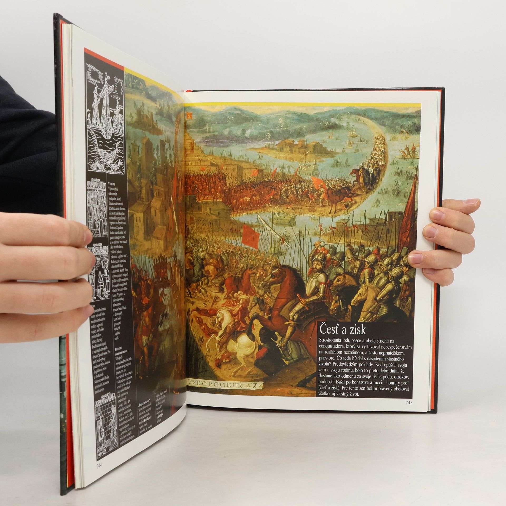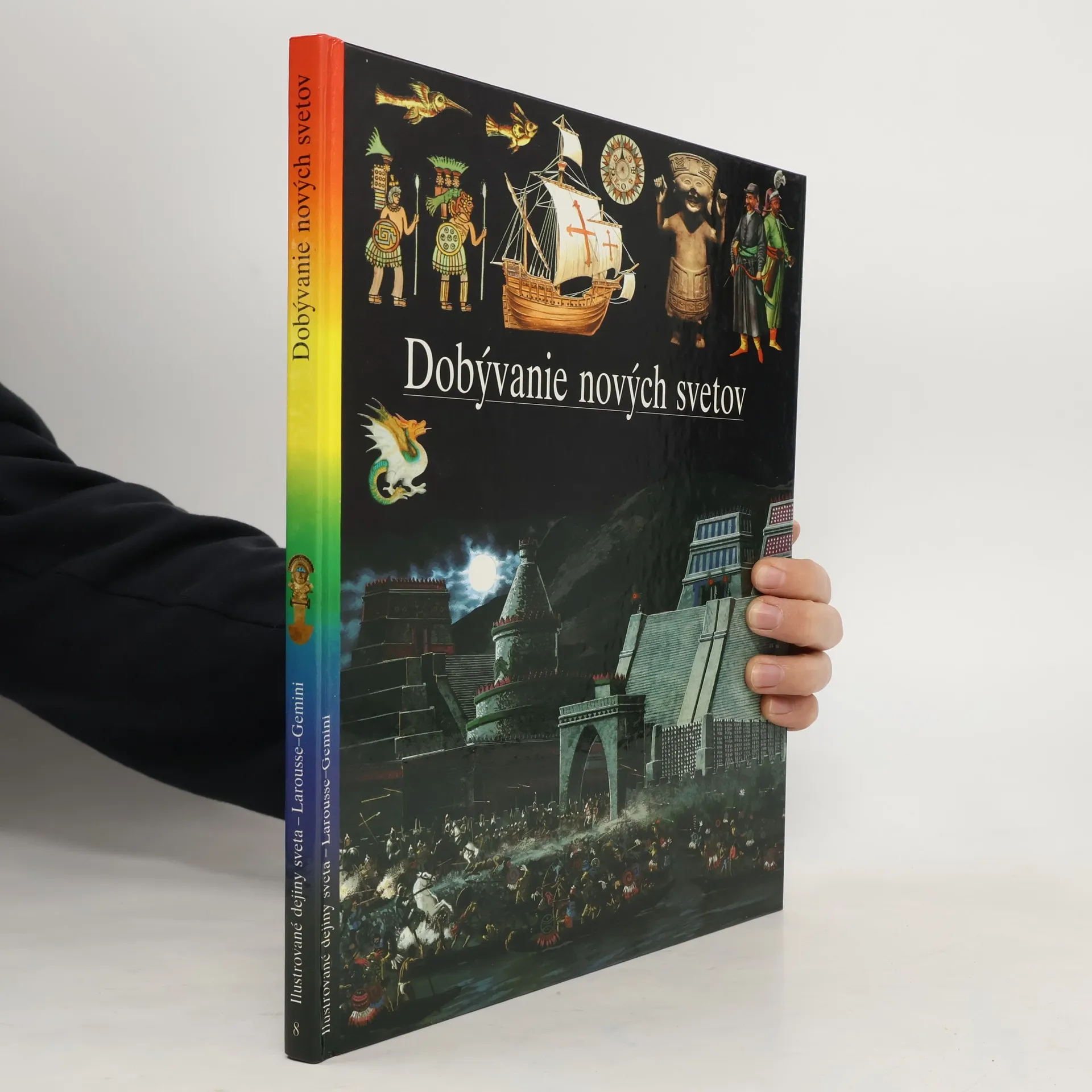 Kapitoly: Hodvábna cesta-Krajina Sérov, Morská cesta, Cesta karaván, Prezradené tajomstvo, Čas arabských obchodníkov, Dobrodružstvo Marca Pola, Dejiny hodvábu, Bádatelia, Obchod s hodvábom. Portugalskí plavci-Atlantická výzva, Zrod karavely, Cesty korenia, Okolo Afriky, Arabský oceán, Indická cesta, Obchodná ríša, Portugalský oceán, Holanďania. Objavenie Ameriky-Španielsko Katolíckych kráľov, Santa María, Na ceste do neznáma, Pozemský raj, Admirál morí, Kolonizácia, Amerika, Magalhaes, Objavitelia. Zlatý vek Osmanov-Zrodenie Osmanskej ríše, Osmanská armáda, Salím I., Süleyman Veľkolepý, Osmanská administratíva, Kúpele, Veľký bazár, Osmanské umenie, Európa a osmanský svet, Bitka pri Lepante. Dobyvatelia-Antily, základňa výbojov, Cortés v Mexiku, Pizarro a Inka, Česť a zisk, Legendy dobytého územia, Zákon silnejšieho, Poznať porazených, Predkolumbovské civilizácie. Španielska a portugalská Amerika-Sieť miest, Smutné Eldorádo, "Indická cesta", Kastová spoločnosť, Osud Indiánov, Misie, Obri na hlinených nohách, K nezávislosti. Prvé vydanie.