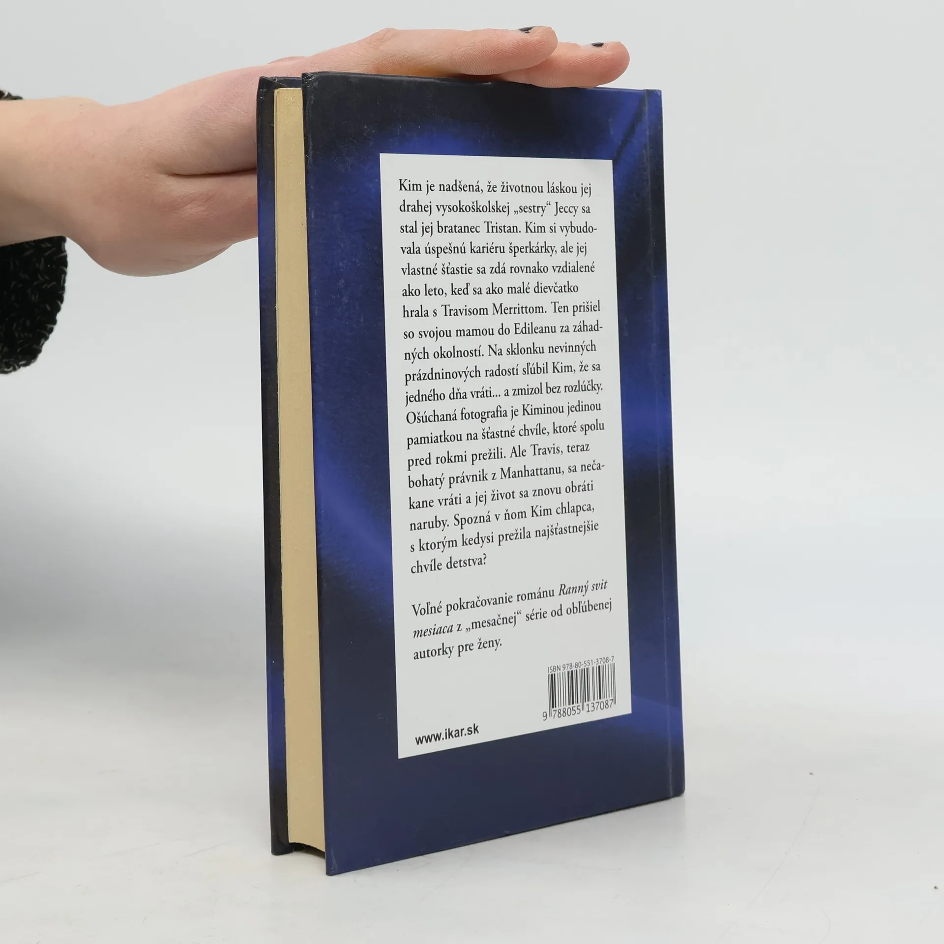 Kim je nadšená, že životnou láskou jej drahej vysokoškolskej „sestry“ Jeccy sa stal jej bratanec Tristan. Kim si vybudovala úspešnú kariéru šperkárky, ale jej vlastné šťastie sa zdá byť rovnako vzdialené ako leto, keď sa ako malé dievčatko hrala s Travisom Merrittom. Ten prišiel so svojou mamou do Edileanu za záhadných okolností. Na sklonku nevinných prázdninových radostí sľúbil Kim, že sa jedného dňa vráti... a zmizol bez pozdravu na rozlúčku. Ošúchaná fotografia je Kiminou jedinou pamiatkou na šťastné chvíle, ktoré spolu pred rokmi prežili. Ale Travis, z ktorého vyrástol bohatý právnik z Manhattanu, sa nečakane vráti a jej život sa znovu obráti naruby. Spozná v ňom Kim chlapca, s ktorým kedysi prežila najšťastnejšie chvíle detstva?