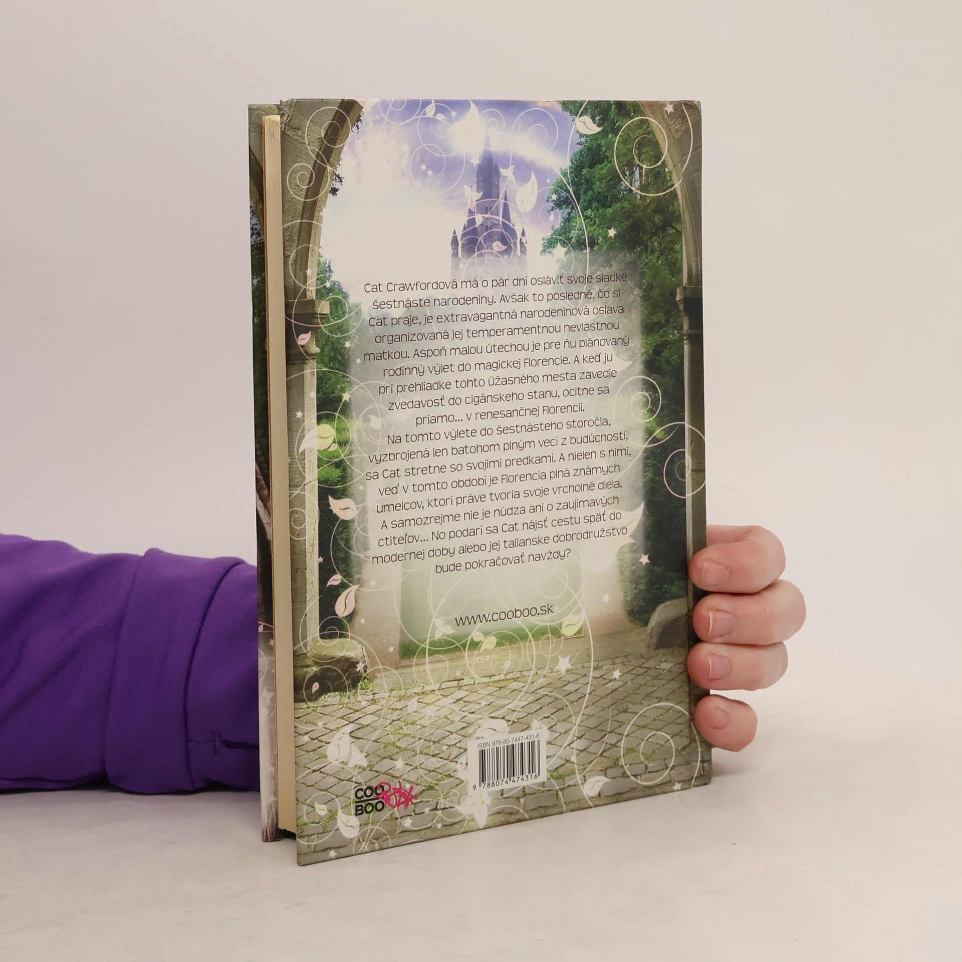 Cat Crawfordová má o pár dní osláviť svoje sladké šestnáste narodeniny. Avšak to posledné, čo si Cat praje, je extravagantná narodeninová oslava organizovaná jej temperamentnou nevlastnou matkou. Aspoň malou útechou je pre ňu plánovaný rodinný výlet do magickej Florencie. A keď ju pri prehliadke tohto úžasného mesta zavedie zvedavosť do cigánskeho stanu, ocitne sa priamo… v renesančnej Florencii. Na tomto výlete do šestnásteho storočia, vyzbrojená len batohom plným vecí z budúcnosti, sa Cat stretne so svojimi predkami. A nie len s nimi, veď v tomto období je Florencia plná známych umelcov, ktorí práve tvoria svoje vrcholné diela. A samozrejme nie je núdza ani o zaujímavých ctiteľov… No podarí sa Cat nájsť cestu späť do modernej doby? Alebo jej talianske dobrodružstvo bude pokračovať navždy?