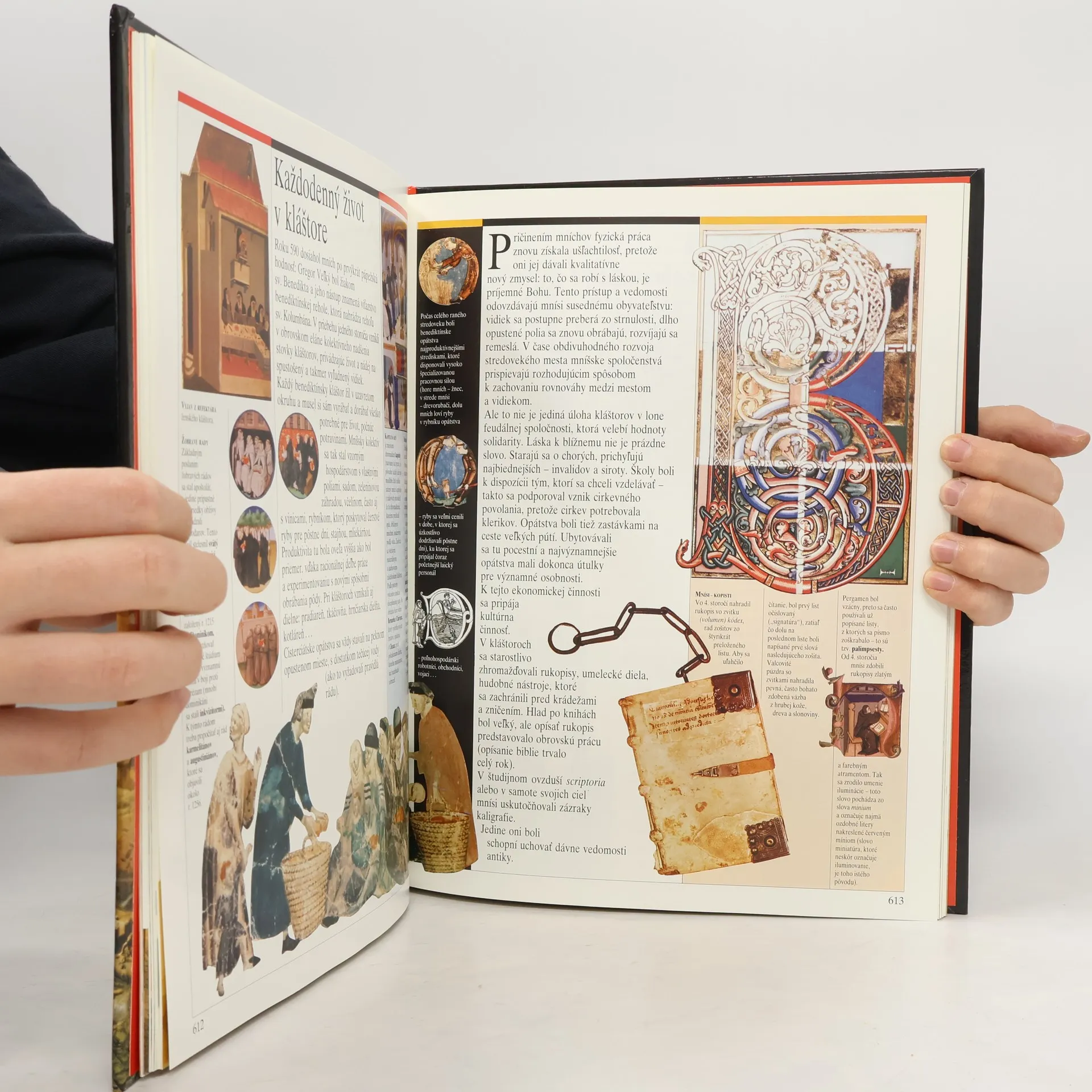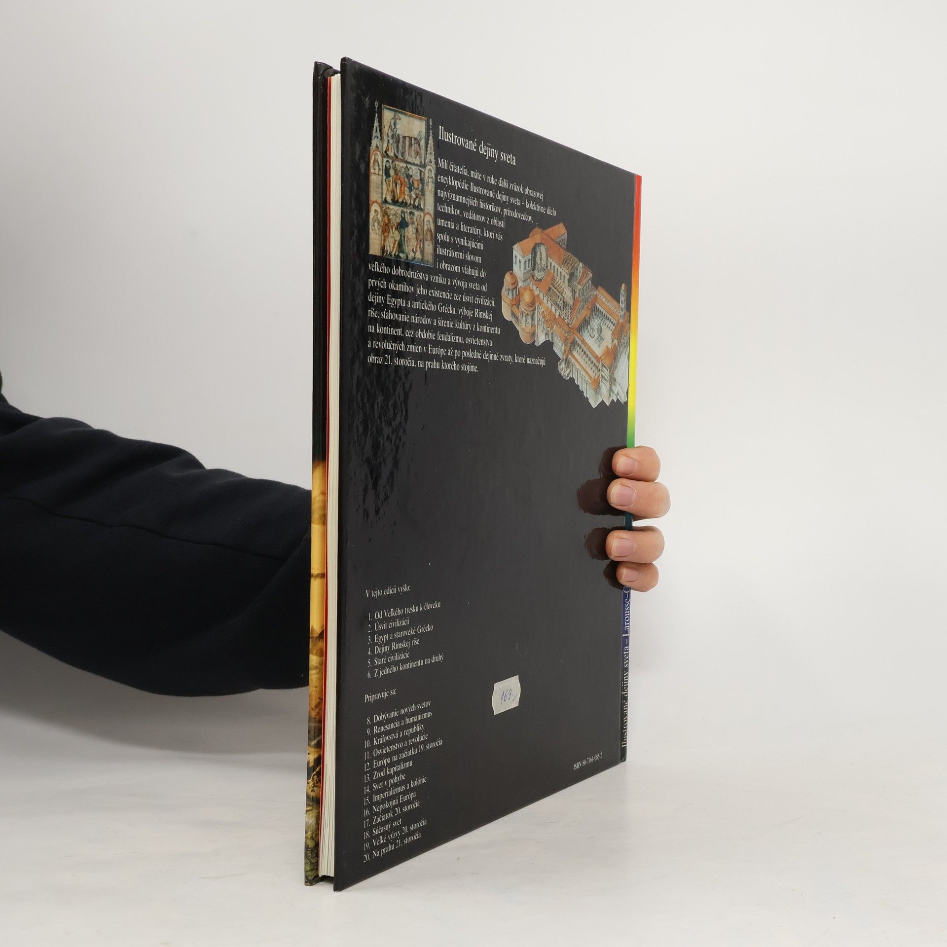 Kapitoly: V čase hradov-Dobytie pevnosti, Dvojitý charakter feudálnej moci, Pomalý pokrok, Vojna, Turnaje, Z poľovačky k stolu, Život na hrade, Európa hradov. Pútnici a križiaci-Sv. Jakub z Compostelly, Trojnásobné posvätné mesto Jeruzalem, Prvá križiacka výprava, Obrana Svätej zeme, Latinské štáty Východu, Akka, Križiacke výpravy Ľudovíta IX. Ľudové križiacke výpravy, Reconquista, Uctievanie relikvií. Vek katedrál-Opátstva a kláštory, Každodenný život v kláštore, Explózia románskeho umenia, Fantastické umenie sochárov, Gotická revolúcia, Katedrála, pýcha mesta, Obrázková kniha kresťanstva, Vývoj gotického štýlu. Klasický stredovek-Svätá ríša, Pápežstvo, Feudálne Francúzsko, Nadvláda Normanov, Feudálne mestá, Politické ideály, Mocní mešťania, Krehká rovnováha. Stredoveké mestá-Život v meste, Zablatené ulice, Bohatstvo miest, Námorný obchod, Sviatky a karneval, Univerzita, Metla moru. Mesto zrodené z vĺn-Zrod veľmoci, Republika v čase kráľov, Svetový trh, Arzenál, Vrchol slávy Benátok, Humanizmus, Včela a medvede, Súmrak benátskych bohov. Prvé vydanie.