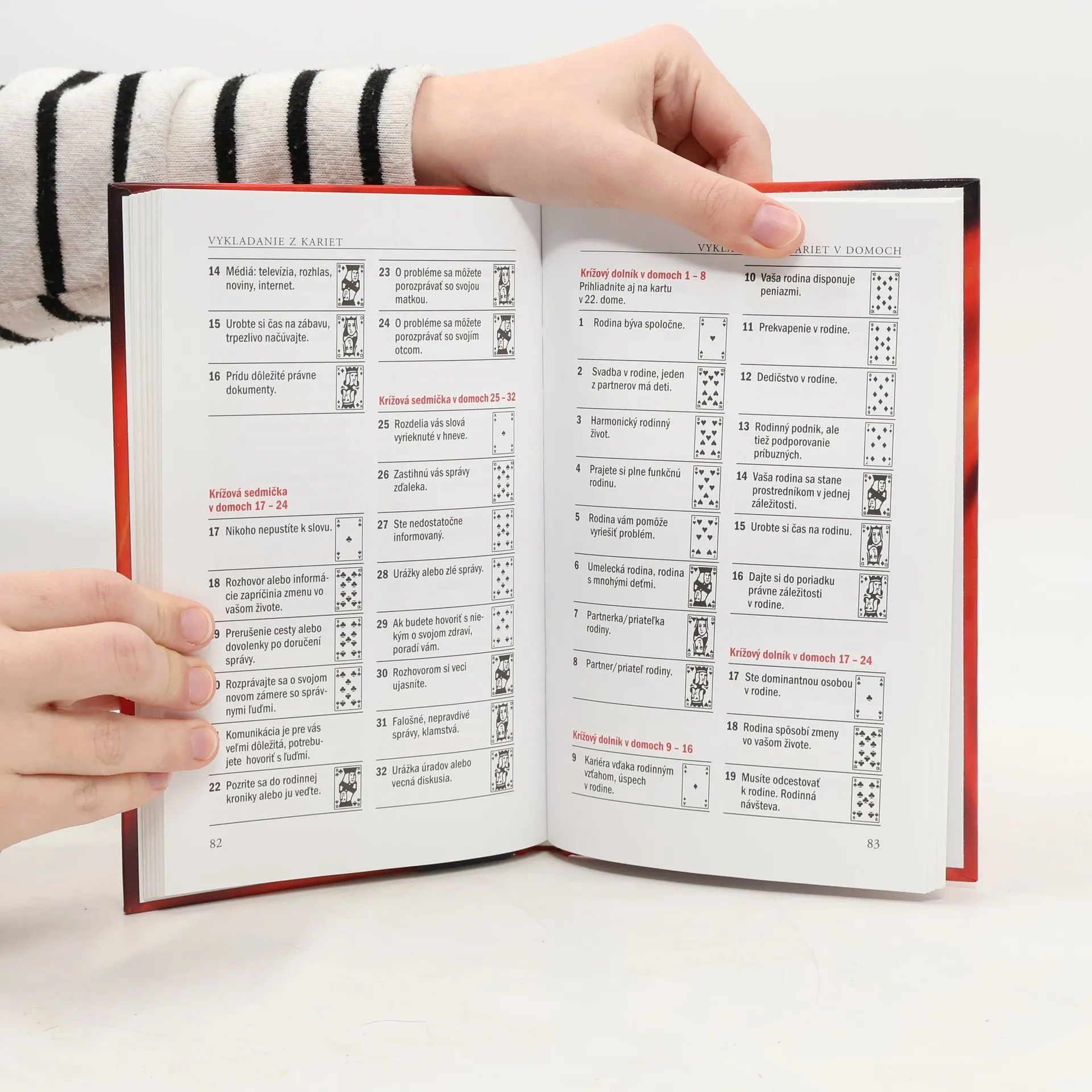 Karty a veštby - tisícročná tradícia, s ktorou súvisia večné témy ako láska, zdravie, peniaze. V malom balíčku sa skrýva celý život. Viete, že kára symbolizujú prácu, kríže zmenu a piky rozum a poriadok ? Že trojka označuje priestor, päťka je synonymom zmeny a osmička znamená stabilitu ? Táto kniha vám ukáže, ako karty správne miešať, vykladať, odkrývať, a predovšetkým ako rozpoznať súvislosti. Kapitoly: Princíp orákula, Pôvod kariet, Univerzum celého života, Kým sa pustíme do vykladania - Ako zaobchádzať s kartami, Vnútorné naladenie na otázky, Miešanie a odkrývanie kariet. Význam jednotlivých kariet -Modifikácie, Čísla a ich význam, Systémy vykladania, Kartová mágia - Práca so symbolmi, Talizman štyroch prvkov, Ako sa plnia priania. Riziká a vedľajšie účinky - Nezmyselné odpovede, Sebaklam?, Veštby pre seba, Vykladanie z kariet iným. 1. vyd.