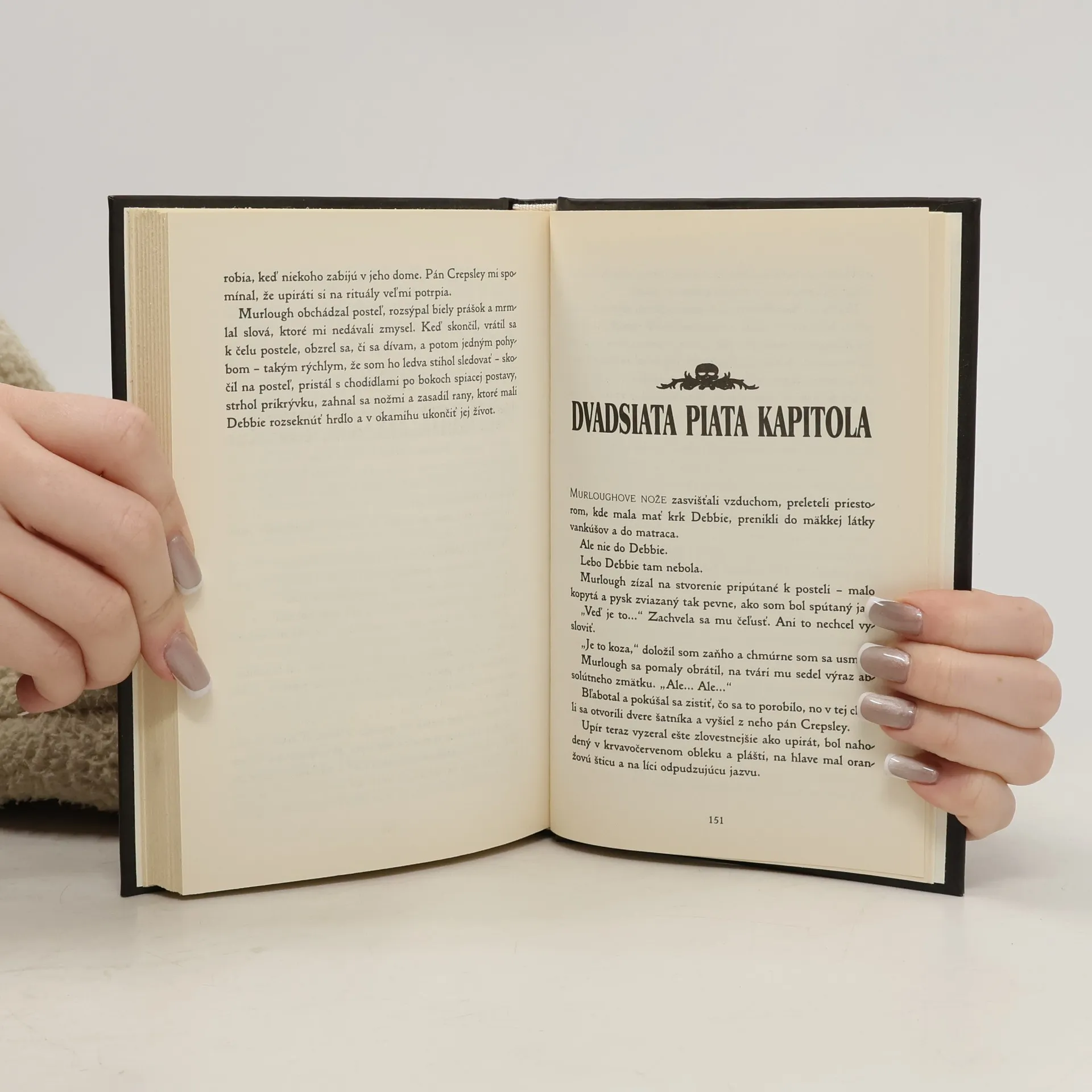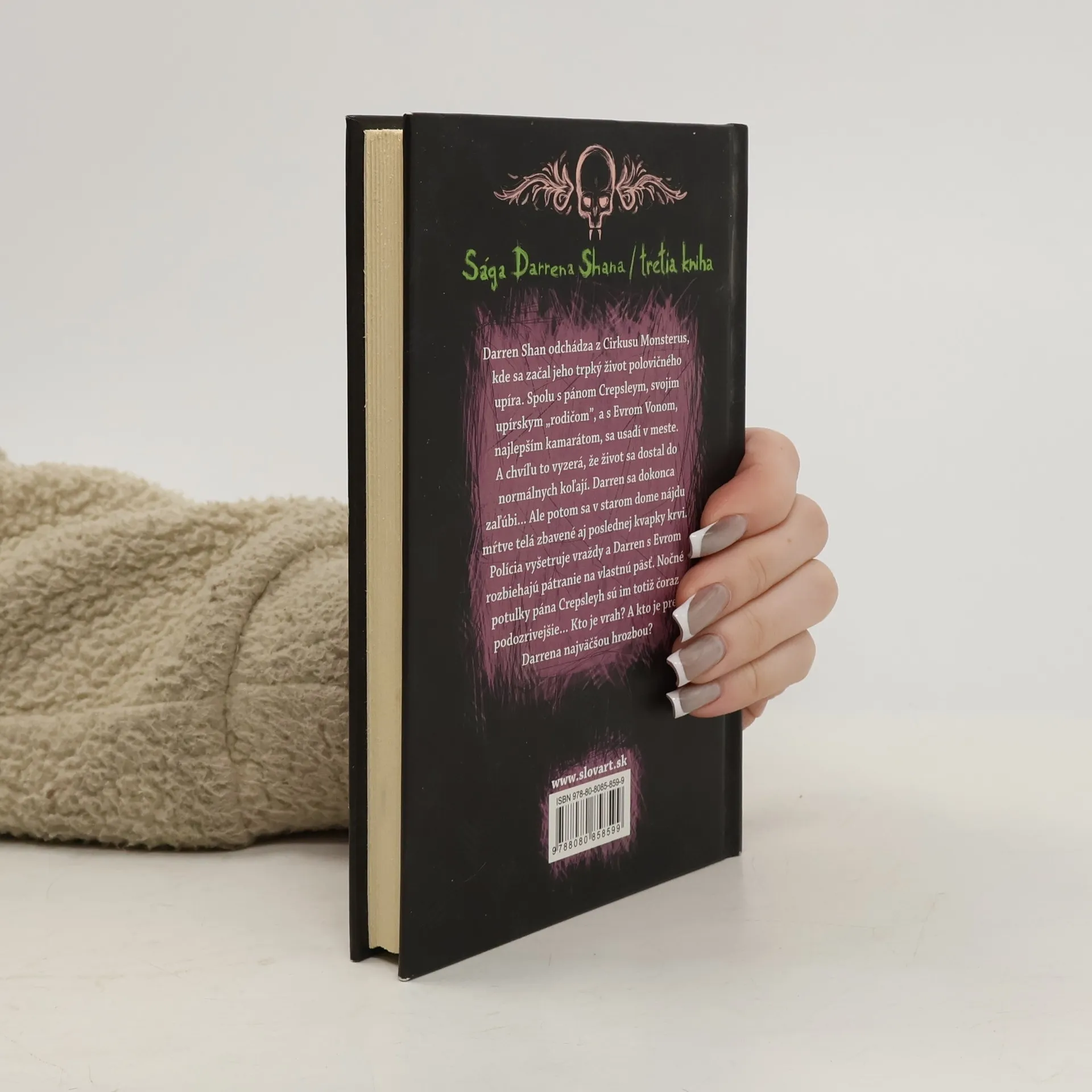 Tretí diel úspešnej upírskej ságy, v ktorom Darren Shan odchádza z Cirkusu Monsterus, kde sa začal jeho trpký život polovičného upíra. Spolu s pánom Crepsleym, svojím upírskym „rodičom“, a s Evrom Vonom, najlepším kamarátom, sa usadí v meste. A chvíľu to vyzerá, že život sa dostal do normálnych koľají. Darren sa dokonca zaľúbi... Ale potom sa v starom dome nájdu mŕtve telá – zbavené aj poslednej kvapky krvi. Polícia vyšetruje vraždy a Darren s Evrom rozbiehajú pátranie na vlastnú päsť. Nočné potulky pána Crepsleyho sú im totiž čoraz podozrivejšie... Kto je vrah? A kto je pre Darrena najväčšou hrozbou?