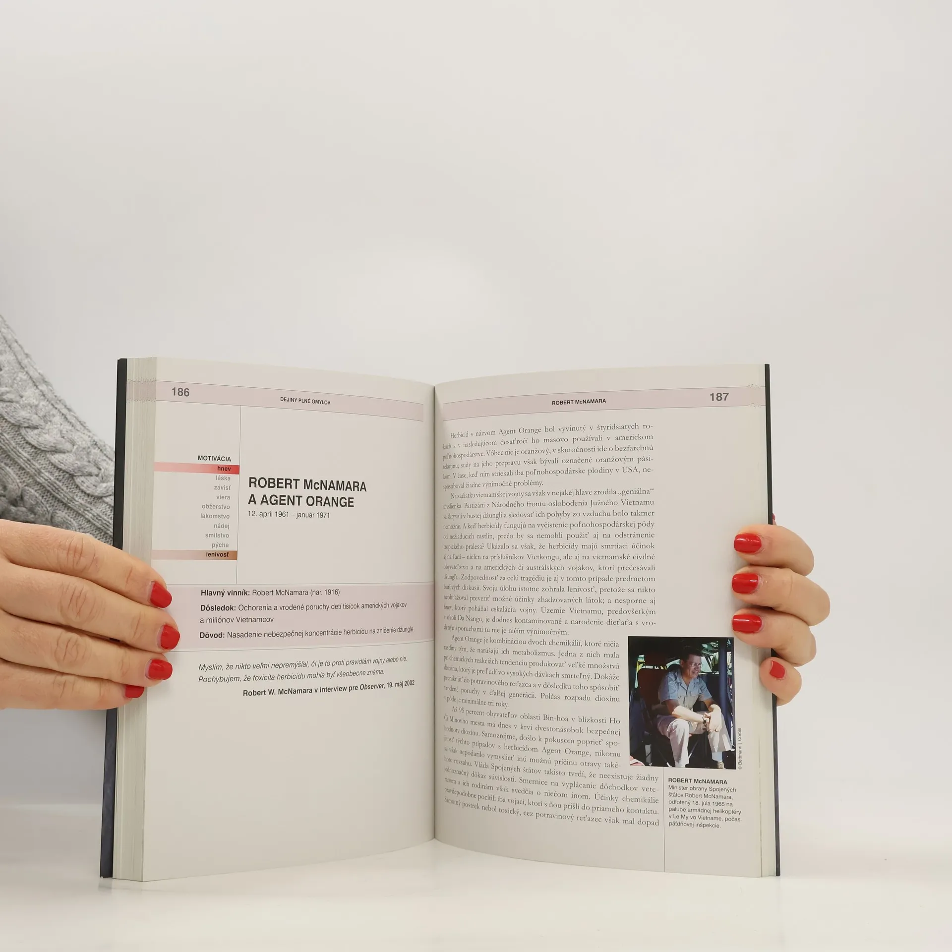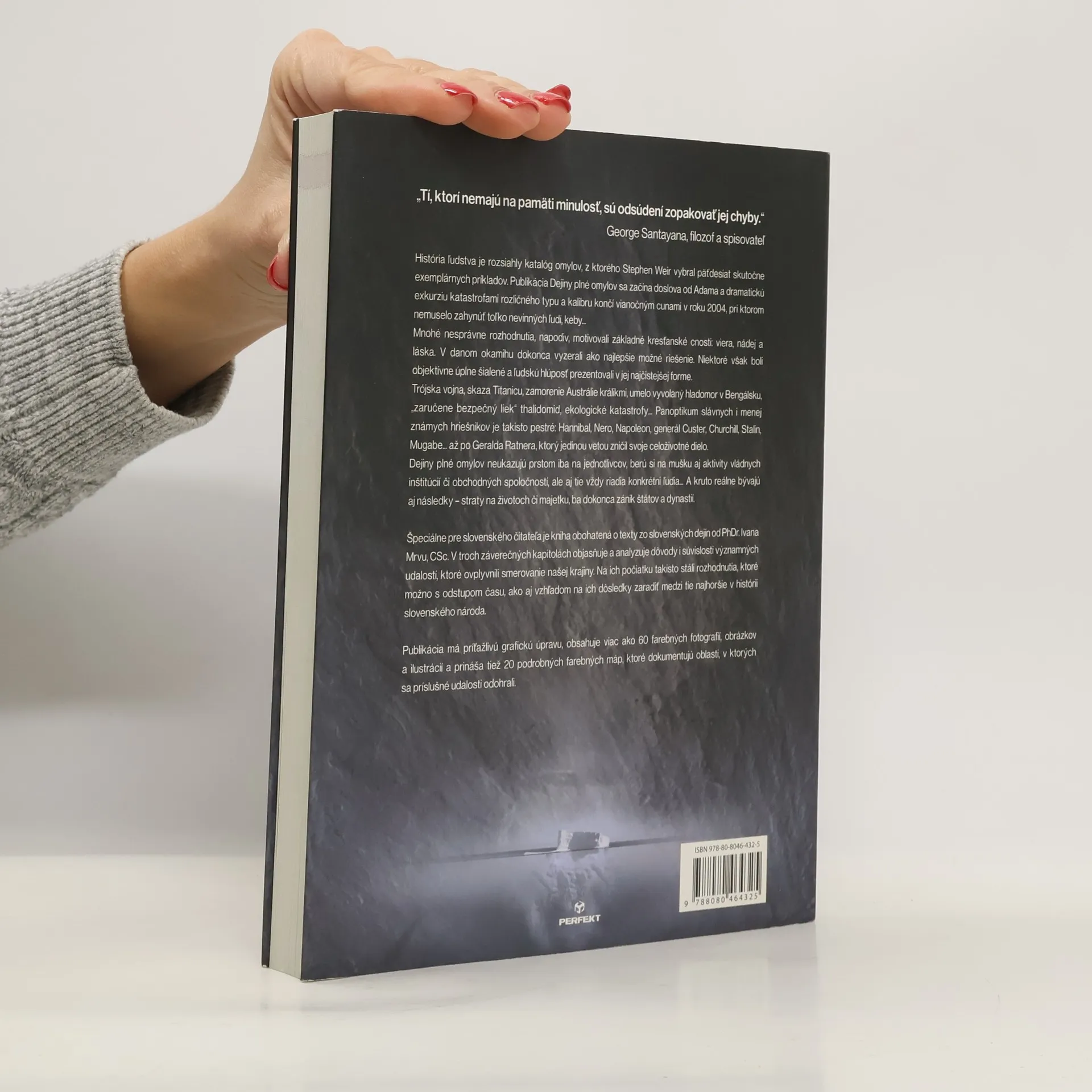 História ľudstva je rozsiahly katalóg omylov, z ktorého Stephen Weir vybral päťdesiat skutočne exemplárnych príkladov. Táto publikácia sa začína doslova od Adama a dramatickú exkurziu katastrofami rozličného typu a kalibru končí vianočným cunami v roku 2004, pri ktorom nemuselo zahynúť toľko nevinných ľudí, keby... Trójska vojna, skaza Titanicu, umelo vyvolaný hladomor v Bengálsku, "zaručene bezpečný liek" thalidomid, ekologické katastrofy... Panoptikum slávnych i menej známych hriešnikov je takisto pestré: Hannibal, Nero, Napoleon, Churchill, Stalin, Mugabe... až po Geralda Ratnera, ktorý jedinou vetou zničil svoje celoživotné dielo. Špeciálne pre slovenského čitateľa je kniha obohatená o texty zo slovenských dejín od PhDr. Ivana Mrvu, CSc. V troch záverečných kapitolách objasňuje a analyzuje dôvody i súvislosti významných udalostí, ktoré ovplyvnili smerovanie našej krajiny. Na ich počiatku takisto stáli rozhodnutia, ktoré možno s odstupom času, ako aj vzhľadom na ich dôsledky zaradiť medzi tie najhoršie v histórii slovenského národa. Publikácia má príťažlivú grafickú úpravu, obsahuje viac ako 60 farebných fotografií, obrázkov a ilustrácií a prináša tiež 20 podrobných farebných máp, ktoré dokumentujú oblasti, v ktorých sa príslušné udalosti odohrali.
