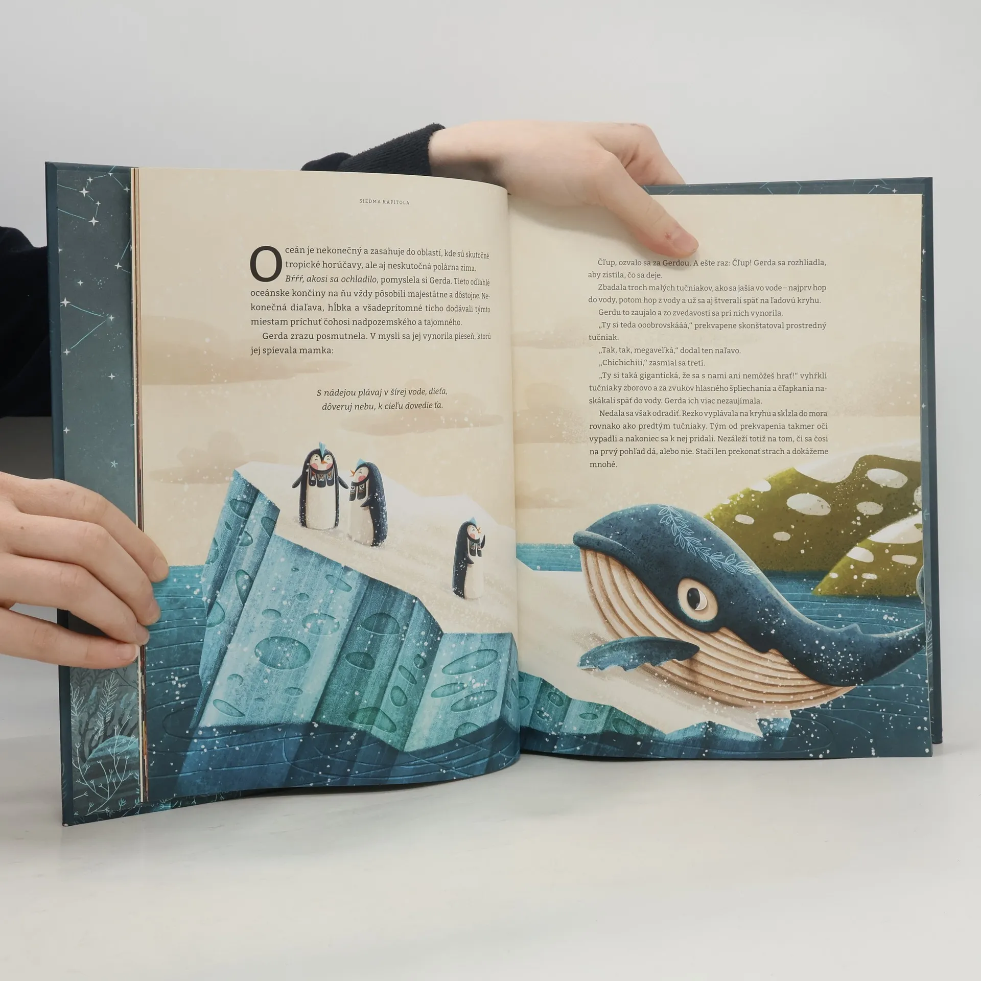 Malá Gerda je najšťastnejšia veľryba v oceáne. Raz sa však prihodí niečo nečakané a Gerda zostane úplne sama. Vyberie sa teda na plavbu šírym oceánom. Cestou stretáva veľa nových kamarátov: kosatky, tučniaky, čajky a chobotnice. Prezradia jej zaujímavosti o svojom živote, ale aj o oceáne, v ktorom všetci spolu žijú. Nájde nakoniec malá Gerda nový domov?