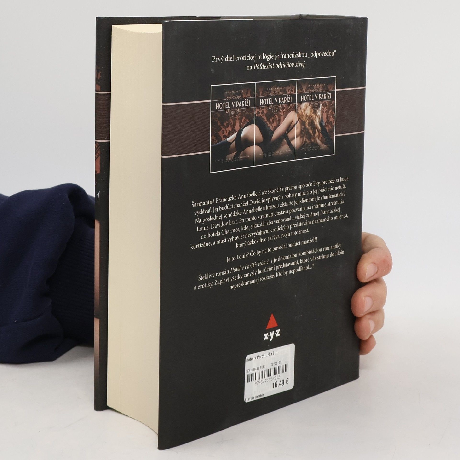 Prvý diel erotickej trilógie je francúzskou „odpoveďou“ na Fifty Shades (Päťdesiat odtieňov sivej). Šarmantná Francúzka Annabelle chce skončiť s prácou spoločníčky, pretože sa bude vydávať. Jej budúci manžel David je vplyvný a bohatý muž a o jej práci nič netuší. Na poslednej schôdzke Annabelle s hrôzou zistí, že jej klientom je charizmatický Louis, Davidov brat. Po tomto stretnutí dostáva pozvania na intímne stretnutia do hotela Charmes, kde je každá izba venovaná nejakej známej francúzskej kurtizáne, a musí splniť niektorú z erotických predstáv neznámeho milenca, ktorý úzkostlivo skrýva svoju totožnosť. Je to Louis? Čo by na to povedal budúci manžel?!