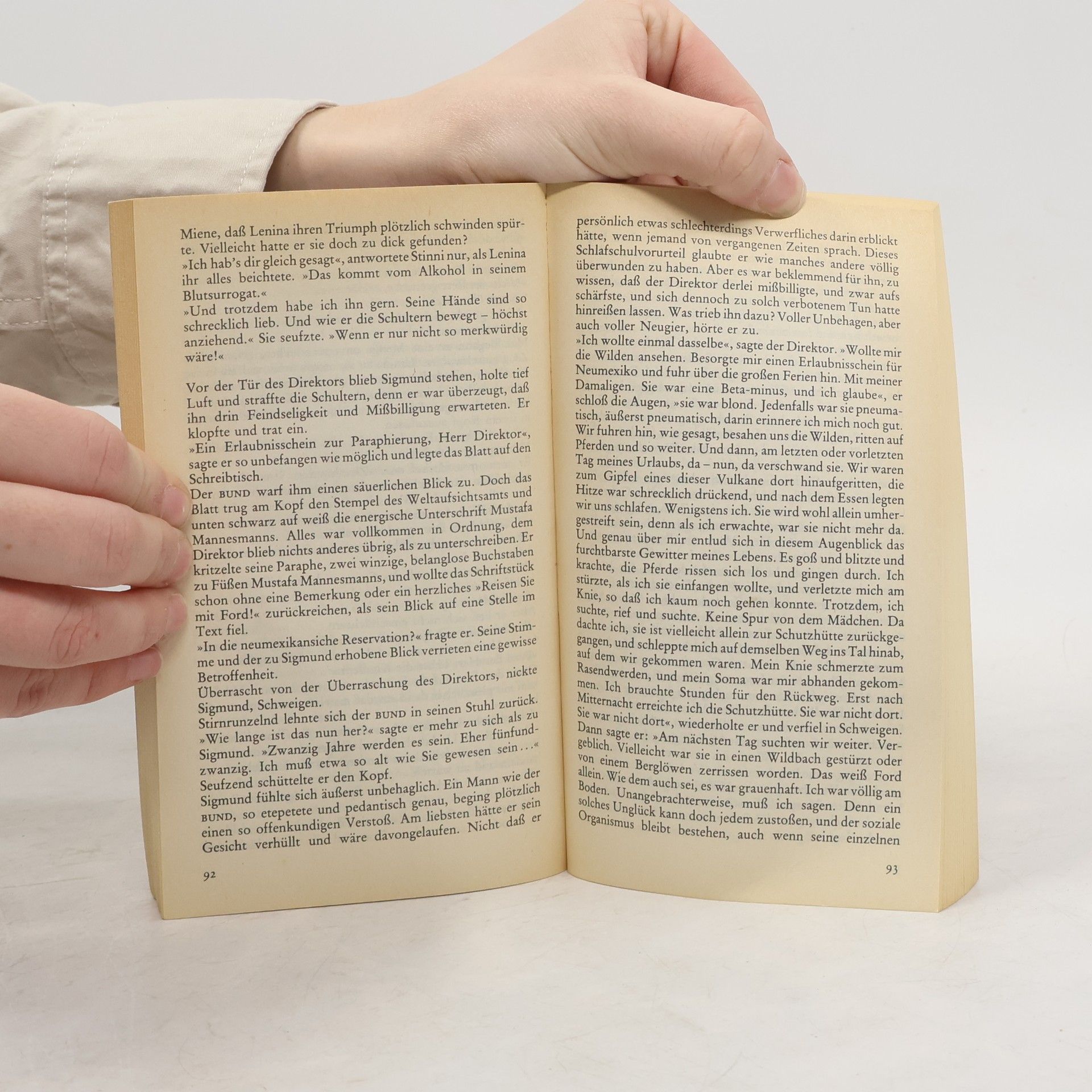 Die schöne neue Welt, die Huxley hier beschreibt, ist die Welt einer konsequent verwirklichten Wohlstandsgesellschaft 'im Jahre 632 nach Ford', einer Wohlstandsgesellschaft, in der alle Menschen am Luxus teilhaben, in der Unruhe, Elend und Krankheit überwunden, in der aber auch Freiheit, Religion, Kunst und Humanität auf der Strecke geblieben sind. Eine totale Herrschaft garantiert ein genormtes Glück. In dieser vollkommen 'formierten' Gesellschaft erscheint jede Art von Individualismus als 'asozial', wird als 'Wilder' betrachtet, wer - wie einer der rebellischen Außenseiter dieses Romans - für sich fordert: 'Ich brauche keine Bequemlichkeit. Ich will Gott, ich will Poesie, ich will wirkliche Gefahren und Freiheit und Tugend. Ich will Sünde!'