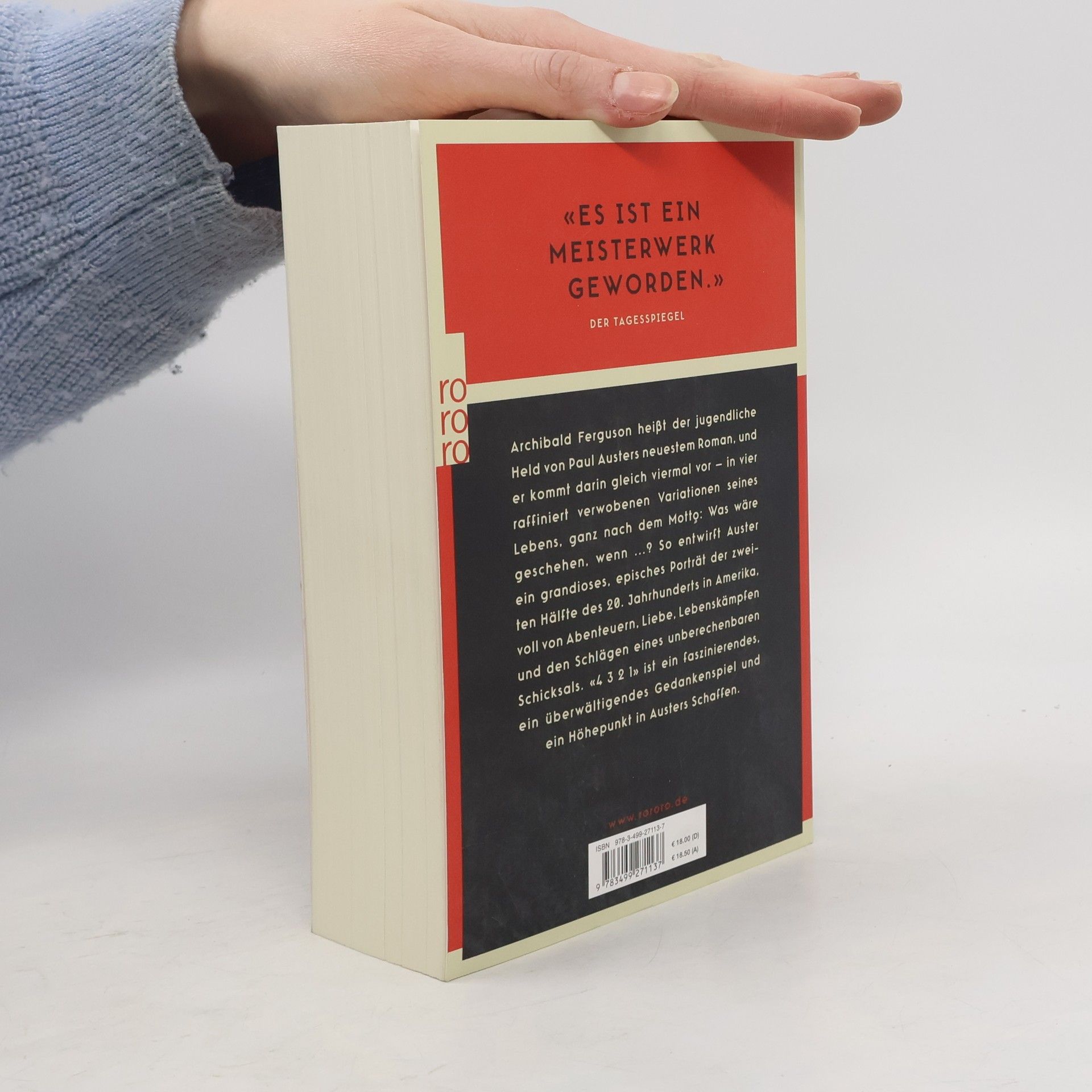 Archibald Ferguson heißt der jugendliche Held von Paul Austers neuestem Roman, und er kommt darin gleich viermal vor – in vier raffiniert verwobenen Variationen seines Lebens, ganz nach dem Motto: Was wäre geschehen, wenn …? So entwirft Auster ein grandioses, episches Porträt der zweiten Hälfte des 20. Jahrhunderts in Amerika, voller Abenteuer, Liebe, Lebenskämpfe und den Schlägen eines unberechenbaren Schicksals. «4 3 2 1» ist ein faszinierendes, ein überwältigendes Gedankenspiel und ein Höhepunkt in Austers Schaffen.