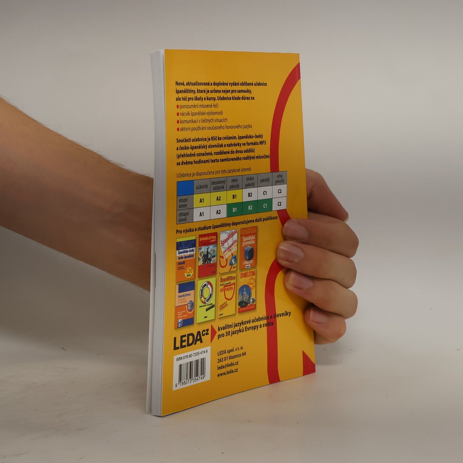 Nové, aktualizované a doplněné vydání oblíbené učebnice zaměřené na výuku evropské španělštiny (doplňkově je pozornost věnována také španělštině latinskoamerické), a to jednoduchou, přehlednou a zábavnou metodou. Ve 44 lekcích uživatel nalezne tematicky i stylisticky rozmanité texty, nejfrekventovanější slovní zásobu španělštiny a běžné frazeologismy. Gramatika je vysvětlována co nejjednodušeji a velmi přehledně a je doprovázena řadou pestrých cvičení. Formou poznámek k textu autorka seznamuje uživatele s reáliemi hispanofonních zemí. Klíč ke cvičením a závěrečný test slouží k samokontrole úspěšnosti. Nedílnou součástí je CD s nahrávkami v MP3. Učebnice je určena nejen samoukům, ale i účastníkům jazykových kursů, studentům středních škol a učilišť i těm, kdo si chtějí rozšířit či osvěžit již dříve získané znalosti španělského jazyka a používat ho v běžných životních situacích. Zvládnutí učebnice zaručuje dosažení stupně pokročilosti B2 až C1 podle doporučení Rady Evropy.