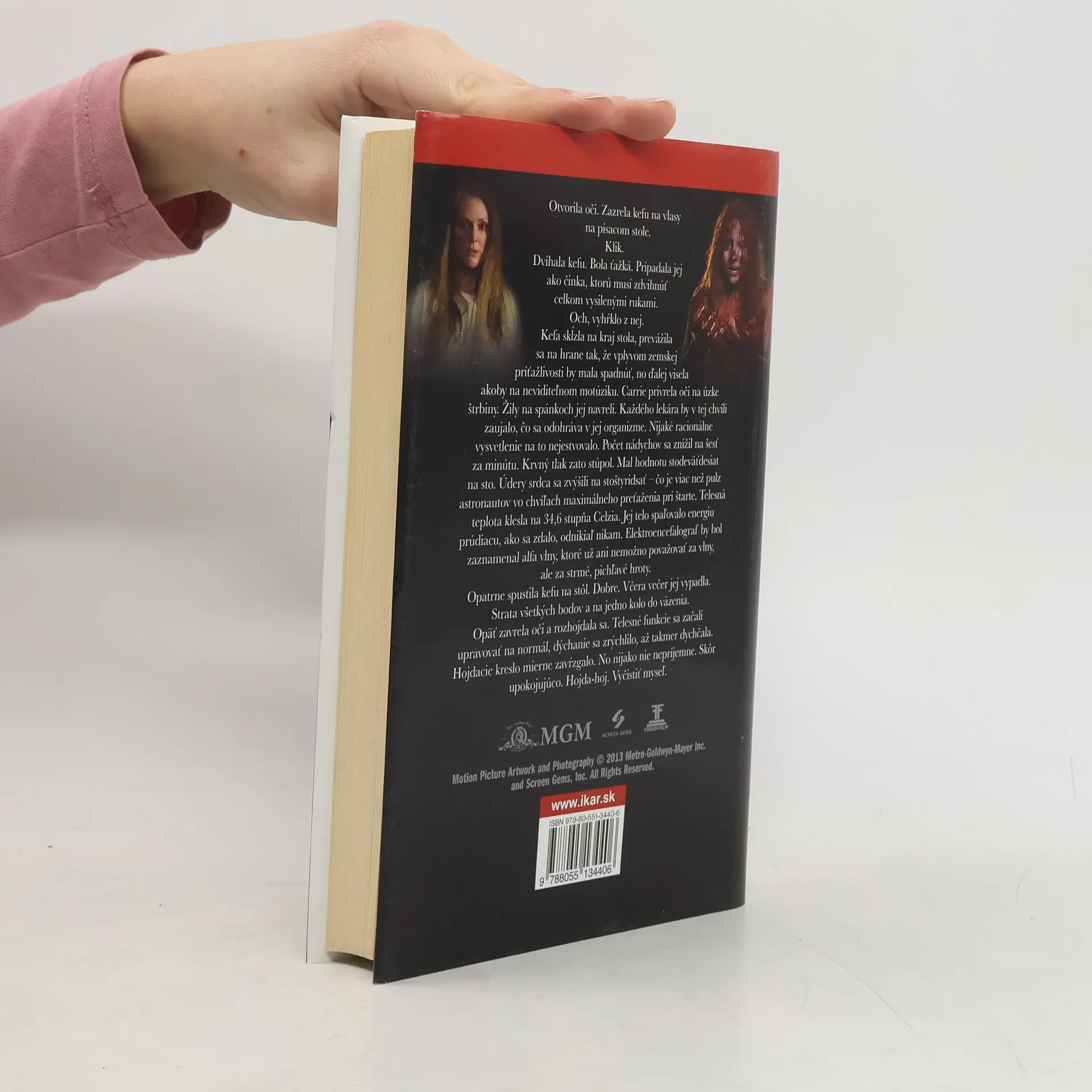 Sedemnásťročná Carrie je outsiderka v škole i v živote. Odmalička robí všetko pre to, aby sa vyrovnala ostatným, ale nedarí sa jej. Nepeknú, neobľúbenú, zakríknutú stredoškoláčku ešte aj doma priam terorizuje fanaticky nábožná matka. Carrie si však jedného dňa uvedomí svoje mimoriadne schopnosti, ktorých rozsah sama sotva tuší. Je telekinetička - silou vôle pohybuje predmetmi. A keď ju na školskom majálese opäť surovo ponížia, jej pomste nič nestojí v ceste. (oficiálny text vydavateľstva)