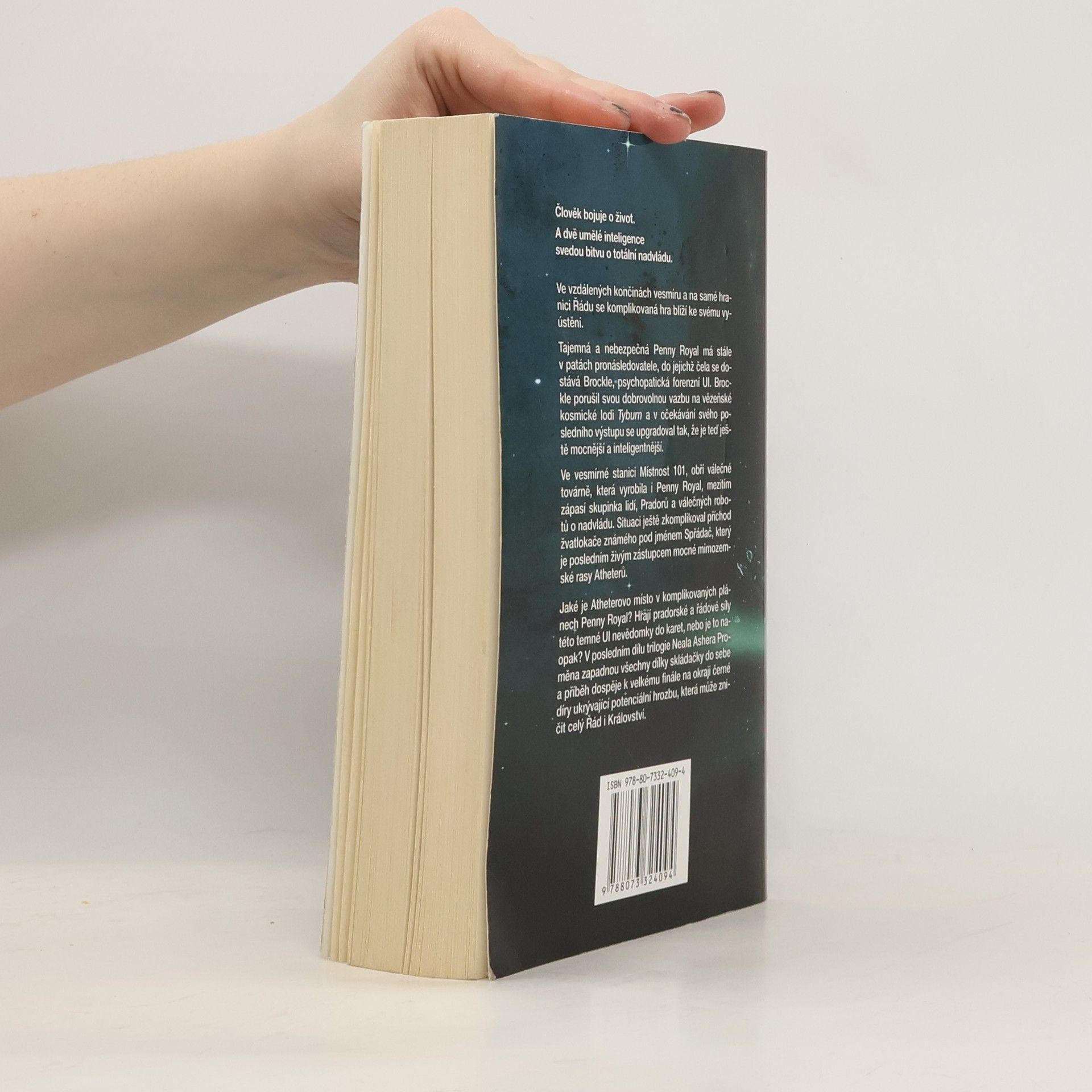 Ve vzdálených končinách vesmíru a na samé hranici Řádu se komplikovaná hra blíží ke svému vyústění. Tajemná a smrtící Penny Royal má stále v patách pronásledovatele, přičemž do jejich čela se dostává Brockle, psychopatická forenzní UI, která unikla z řádového vězení a v očekávání svého posledního výstupu se up-gradovala tak, že je teď ještě mocnější a inteligentnější. Ve vesmírné stanici Místnost 101, obří válečné továrně, která Penny Royal vyrobila, zápasí skupinka lidí, pradorů a válečných robotů o nadvládu. Situaci ještě zkomplikoval příchod žvatlokače známého pod jménem Spřádač, který je poslední živý zástupce mocné mimozemské rasy Atheterů. Jaké je Atheterovo místo v komplikovaných plánech Penny Royal? Hrají pradorské a řádové síly této temné UI nevědomky do karet, nebo je to naopak? V posledním dílu trilogie Neala Ashera Proměna zapadnou všechny dílky skládačky do sebe a příběh dospěje k velkému finále na okraji černé díry ukrývající tajemství, které může zničit celý Řád.
