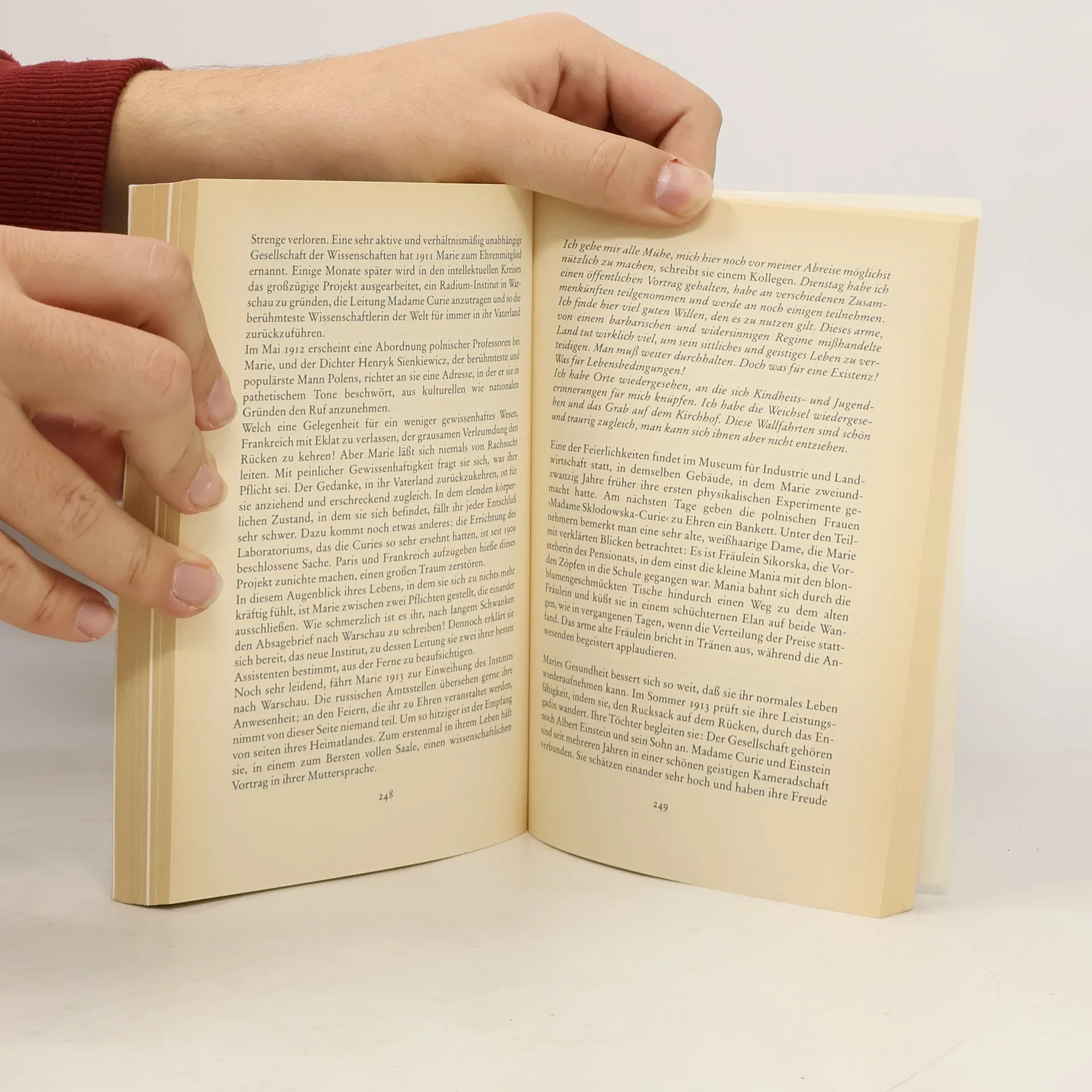 Diese Biographie der Madame Curie, die zuerst 1937, drei Jahre nach ihrem Tod, erschien, wurde ein aufsehenerregender Welterfolg. Das Leben der berühmten Physikerin und Nobelpreisträgerin Marie Curie, die das Radium entdeckte, wird von ihrer Tochter Eve erzählt. Anhand von Briefen, Tagebüchern und Erinnerungen schildert Eve Curie die Geschichte dieser ungewöhnlichen Frau, die 1867 in Warschau geboren wurde, als Studentin nach Paris ging und dort in jungen Jahren bereits mit ihren Entdeckungen die Naturwissenschaft unseres Jahrhunderts entscheidend prägte. Nach monatelangen Versuchen und unter Mithilfe ihres Mannes Pierre Curie gelingt es ihr, das Radium zu entdecken. 1903 beschließt daraufhin die Akademie der Wissenschaften in Stockholm, den Nobelpreis für Physik je zur Hälfte an Henri Becquerel und an Pierre und Marie Curie zu verleihen. Nach dem Tod ihres Mannes arbeitet Marie Curie unermüdlich weiter; sie hält als erste Frau Vorlesungen an der Sorbonne, und 1911 spricht ihr die Akademie der Wissenschaften den Nobelpreis für Chemie zu.Wie eine Chronik phantastischer Abenteuer lesen sich die allgemeinverständlich geschriebenen Berichte über die wissenschaftlichen Entdeckungen, bei denen der Autorin die Mitarbeit ihrer Schwester, der Nobelpreisträgerin Irène Joliot-Curie, half.