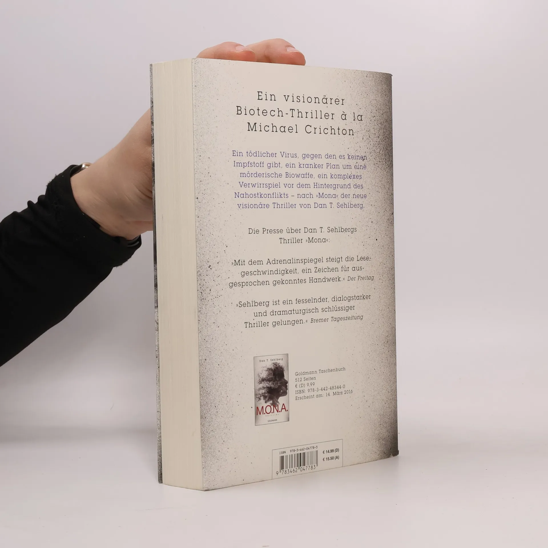 Ein visionärer Biotech-Thriller à la Michael Crichton Ein tödlicher Virus, gegen den es keine Impfung gibt, ein kranker Plan um eine mörderische Biowaffe, ein komplexes Verwirrspiel vor dem Hintergrund des Nahostkonflikts – nach »M. O. N. A.« der neue visionäre Thriller von Dan T. Sehlberg. Hanna, die Frau des IT-Professors Eric Söderqvist, hat die Infektion mit dem neuartigen Virus NCoLV überlebt. Angeblich steht die Biotechfirma Cryonordic in Uppsala kurz vor der Entwicklung eines Impfstoffs, doch die dafür benötigten Antikörper lassen sich nur aus Hannas Blut gewinnen. Eric hat Bedenken; es gibt Gerüchte, dass die Eigentümer von Cryonordic in terroristische Aktivitäten verwickelt sind. Akim Katz, Deckname Sinon, wird in Israel festgehalten. Der langjährige enge Berater des israelischen Ministerpräsidenten war als Spion der Hisbollah enttarnt worden. Nach einer dramatischen Befreiungsaktion schickt ihn Cryonordic auf eine Geheimmission. Doch Sinon sinnt auf Rache ... Eric erkennt, dass seine geliebte Hanna in großer Gefahr schwebt. Wer könnte da zu ihrem Schutz willkommener sein als die knallharte Mossad-Agentin Rachel Papo, die plötzlich im Haus der Söderqvists in den Stockholmer Schären auftaucht. Doch Eric weiß nicht, für wen Rachel wirklich arbeitet und wie skrupellos sie in Wahrheit ist ...