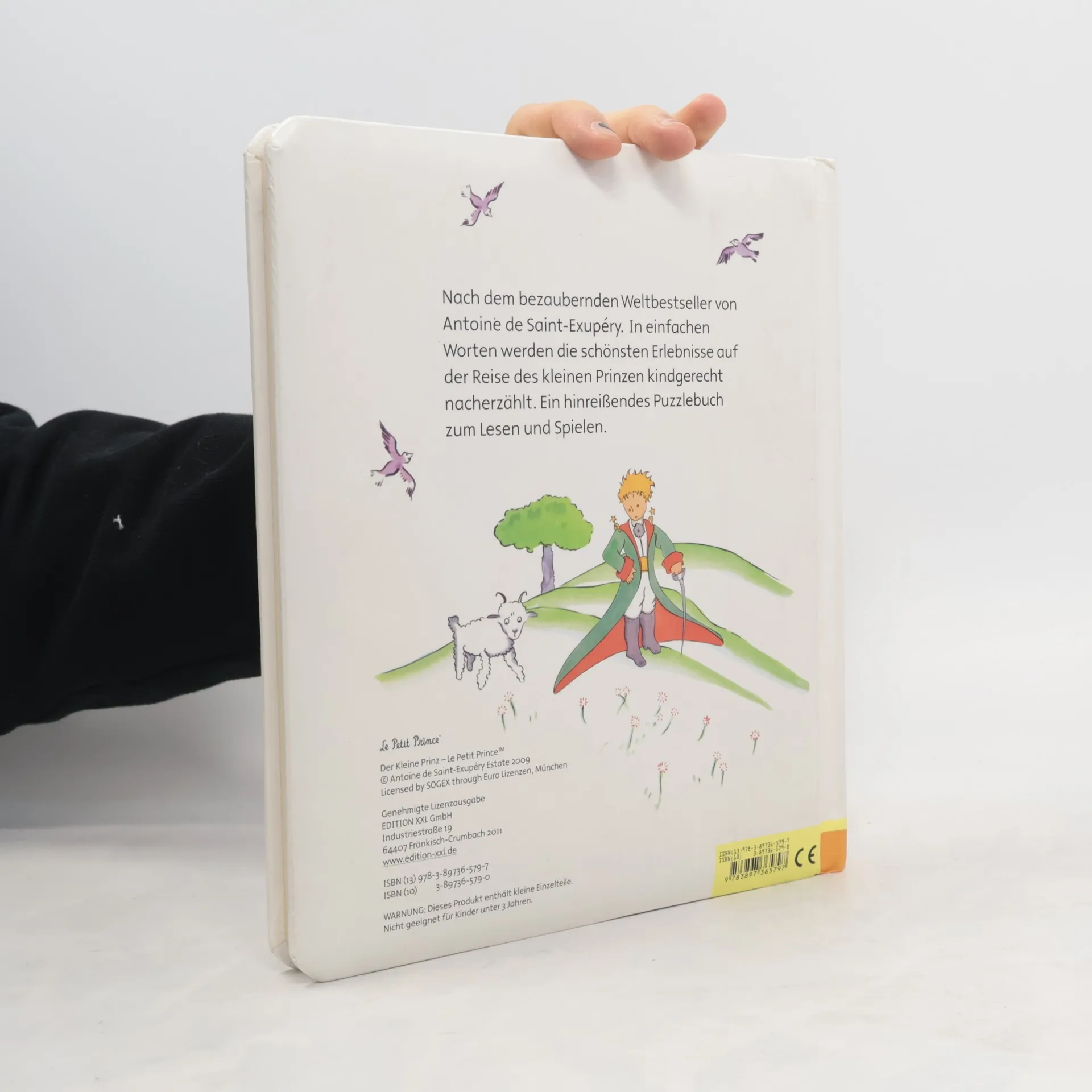 Nach dem bezaubernden Weltbestseller von Antoine de Saint-Exupéry. In einfachen Worten werden die schönsten Erlebnisse auf der Reise des kleinen Prinzen kindgerecht nacherzählt. Ein hinreißendes Puzzlebuch zum Lesen und Spielen. Ein hochwertig ausgestattetes Puzzlebuch mit fünf herausnehmbaren Kinderpuzzles aus stabiler Pappe und tollen Glitzereffekten.
