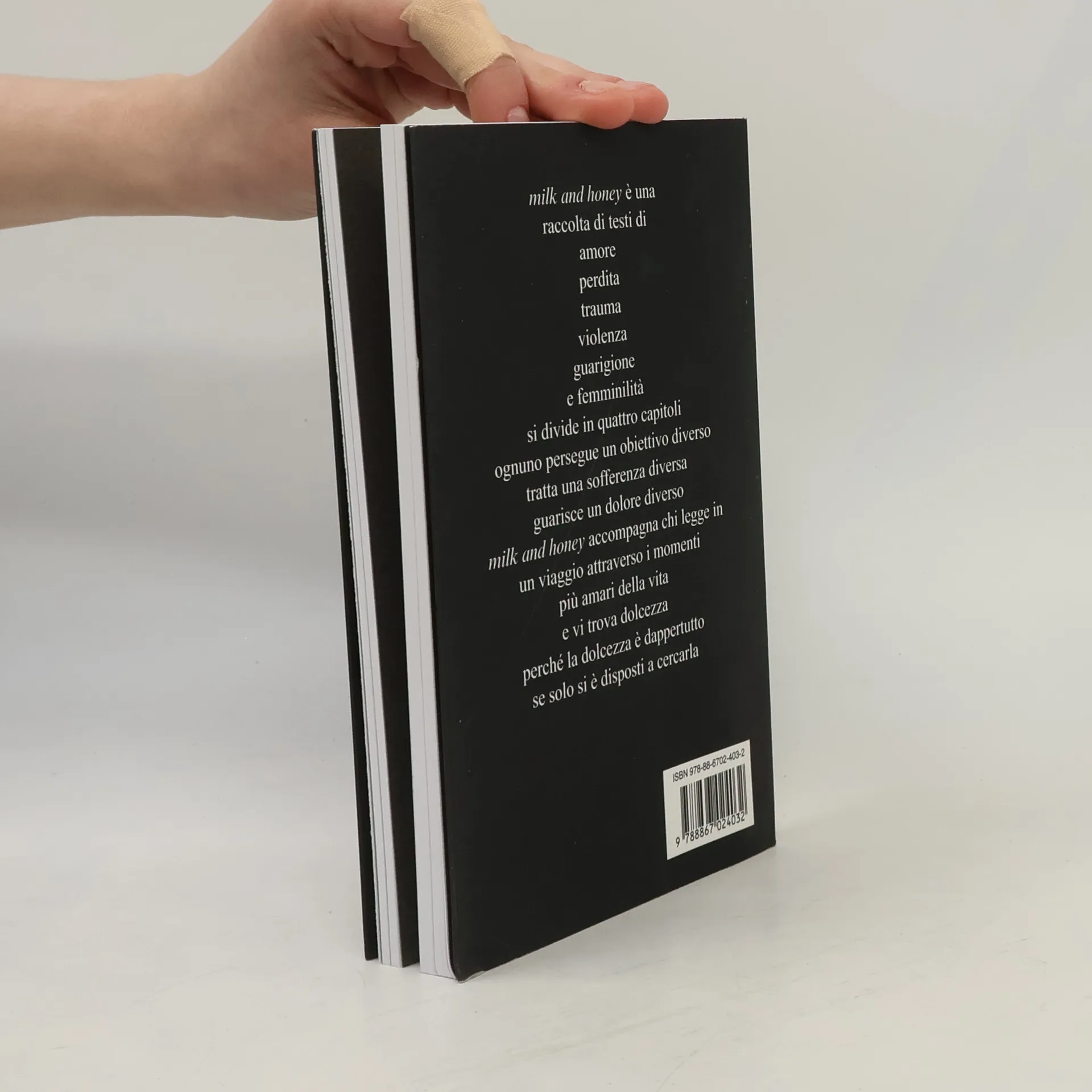 'Milk and Honey' è una raccolta di testi di amore, perdita, trauma, violenza, guarigione e femminilità. Si divide in quattro capitoli, ognuno persegue un obiettivo diverso, tratta una sofferenza diversa, guarisce un dolore diverso. 'Milk and Honey' accompagna chi legge in un viaggio attraverso i momenti più amari della vita e vi trova dolcezza, perché la dolcezza è dappertutto se solo si è disposti a cercarla.