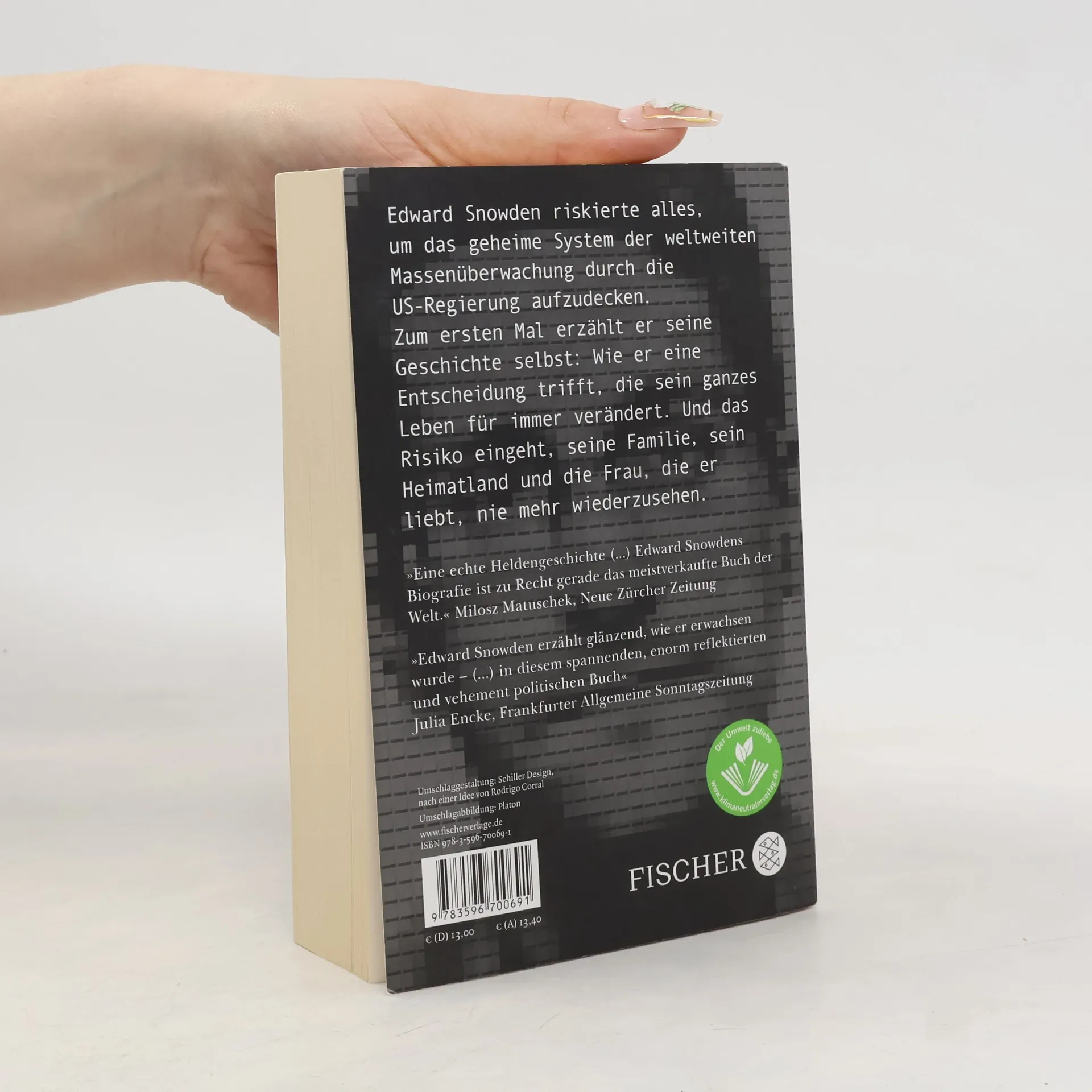 Edward Snowden riskierte alles, um das System der Massenüberwachung durch die US-Regierung aufzudecken. Jetzt erzählt er seine Geschichte. »Mein Name ist Edward Snowden. Sie halten dieses Buch in Händen, weil ich etwas getan habe, das für einen Mann in meiner Position sehr gefährlich ist: Ich habe beschlossen, die Wahrheit zu sagen.« Mit 29 Jahren schockiert Edward Snowden die Welt: Als Datenspezialist und Geheimnisträger für NSA und CIA deckt er auf, dass die US-Regierung heimlich das Ziel verfolgt, jeden Anruf, jede SMS und jede E-Mail zu überwachen. Das Ergebnis wäre ein nie dagewesenes System der Massenüberwachung, mit dem das Privatleben jeder einzelnen Person auf der Welt durchleuchtet werden kann. Edward Snowden trifft eine folgenschwere Entscheidung: Er macht die geheimen Pläne öffentlich. Damit gibt er sein ganzes bisheriges Leben auf. Er weiß, dass er seine Familie, sein Heimatland und die Frau, die er liebt, vielleicht nie wiedersehen wird. Ein junger Mann, der im Netz aufgewachsen ist. Der zum Spion wird, zum Whistleblower und schließlich zum Gewissen des Internets. Jetzt erzählt Edward Snowden seine Geschichte selbst. Dieses Buch bringt den wichtigsten Konflikt unserer Zeit auf den Punkt: Was akzeptieren wir – und wo müssen wir anfangen Widerstand zu leisten?