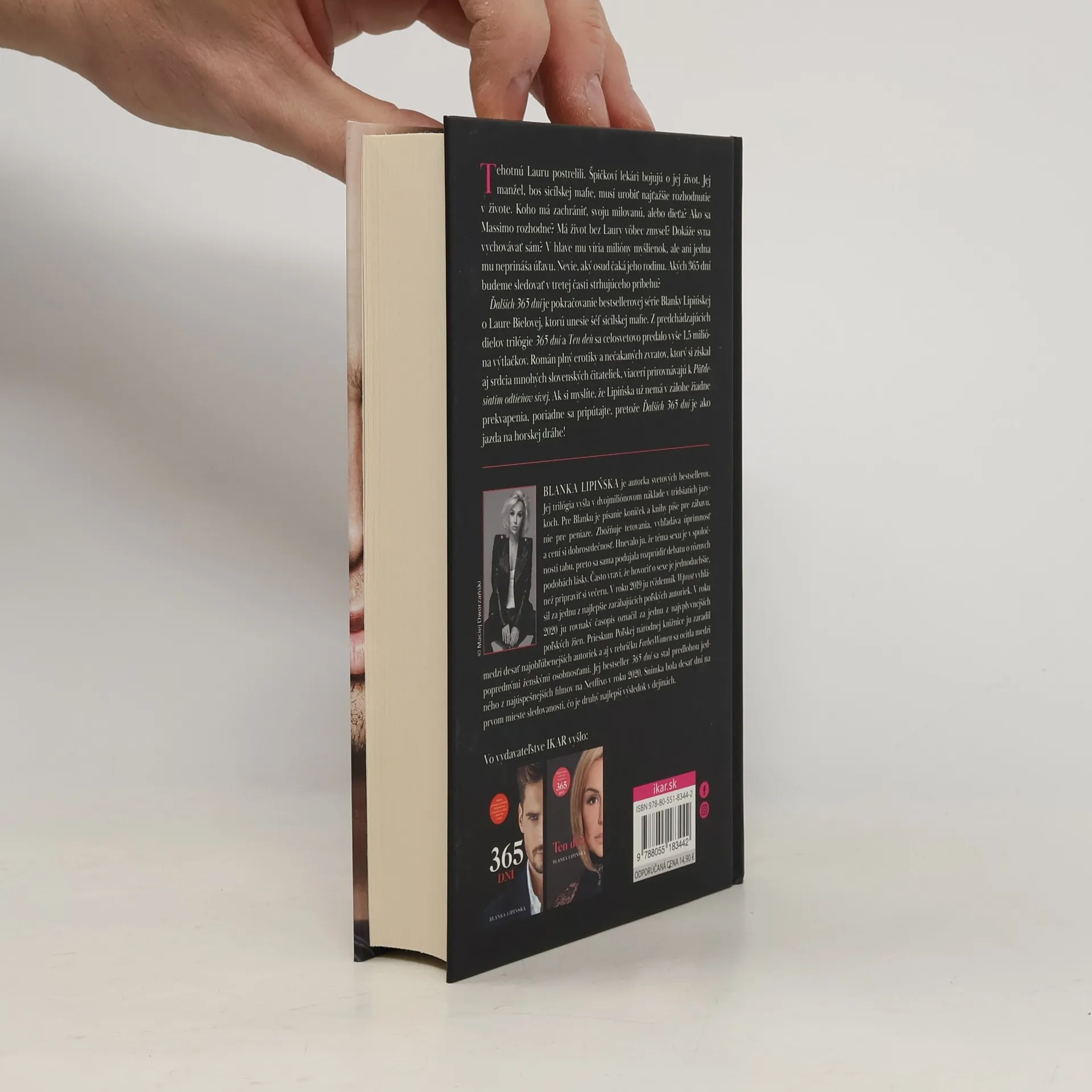 Tehotnú Lauru postrelili. Špičkoví lekári bojujú o jej život. Jej manžel, bos sicílskej mafie, musí urobiť najťažšie rozhodnutie v živote. Koho má zachrániť, svoju milovanú, alebo dieťa? Ako sa Massimo rozhodne? Má život bez Laury vôbec zmysel? Dokáže syna vychovávať sám? V hlave mu víria milióny myšlienok, ale ani jedna mu neprináša úľavu. Nevie, aký osud čaká jeho rodinu. Akých 365 dní budeme sledovať v tretej časti strhujúceho príbehu? Ďalších 365 dní je pokračovanie bestsellerovej série Blanky Lipińskej o Laure Bielovej, ktorú unesie šéf sicílskej mafie. Z predchádzajúcich dielov trilógie 365 dní a Ten deň sa celosvetovo predalo vyše 1,5 milióna výtlačkov. Román plný erotiky a nečakaných zvratov, ktorý si získal aj srdcia mnohých slovenských čitateliek, viacerí prirovnávajú k Päťdesiatim odtieňov sivej. Ak si myslíte, že Lipińska už nemá v zálohe žiadne prekvapenia, poriadne sa pripútajte, pretože Ďalších 365 dní je ako jazda na horskej dráhe!