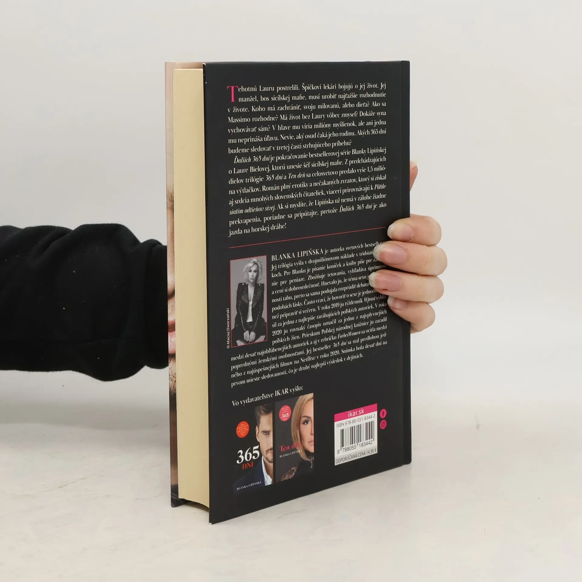 Tehotnú Lauru postrelili. Špičkoví lekári bojujú o jej život. Jej manžel, bos sicílskej mafie, musí urobiť najťažšie rozhodnutie v živote. Koho má zachrániť, svoju milovanú, alebo dieťa? Ako sa Massimo rozhodne? Má život bez Laury vôbec zmysel? Dokáže syna vychovávať sám? V hlave mu víria milióny myšlienok, ale ani jedna mu neprináša úľavu. Nevie, aký osud čaká jeho rodinu. Akých 365 dní budeme sledovať v tretej časti strhujúceho príbehu? Ďalších 365 dní je pokračovanie bestsellerovej série Blanky Lipińskej o Laure Bielovej, ktorú unesie šéf sicílskej mafie. Z predchádzajúcich dielov trilógie 365 dní a Ten deň sa celosvetovo predalo vyše 1,5 milióna výtlačkov. Román plný erotiky a nečakaných zvratov, ktorý si získal aj srdcia mnohých slovenských čitateliek, viacerí prirovnávajú k Päťdesiatim odtieňov sivej. Ak si myslíte, že Lipińska už nemá v zálohe žiadne prekvapenia, poriadne sa pripútajte, pretože Ďalších 365 dní je ako jazda na horskej dráhe!