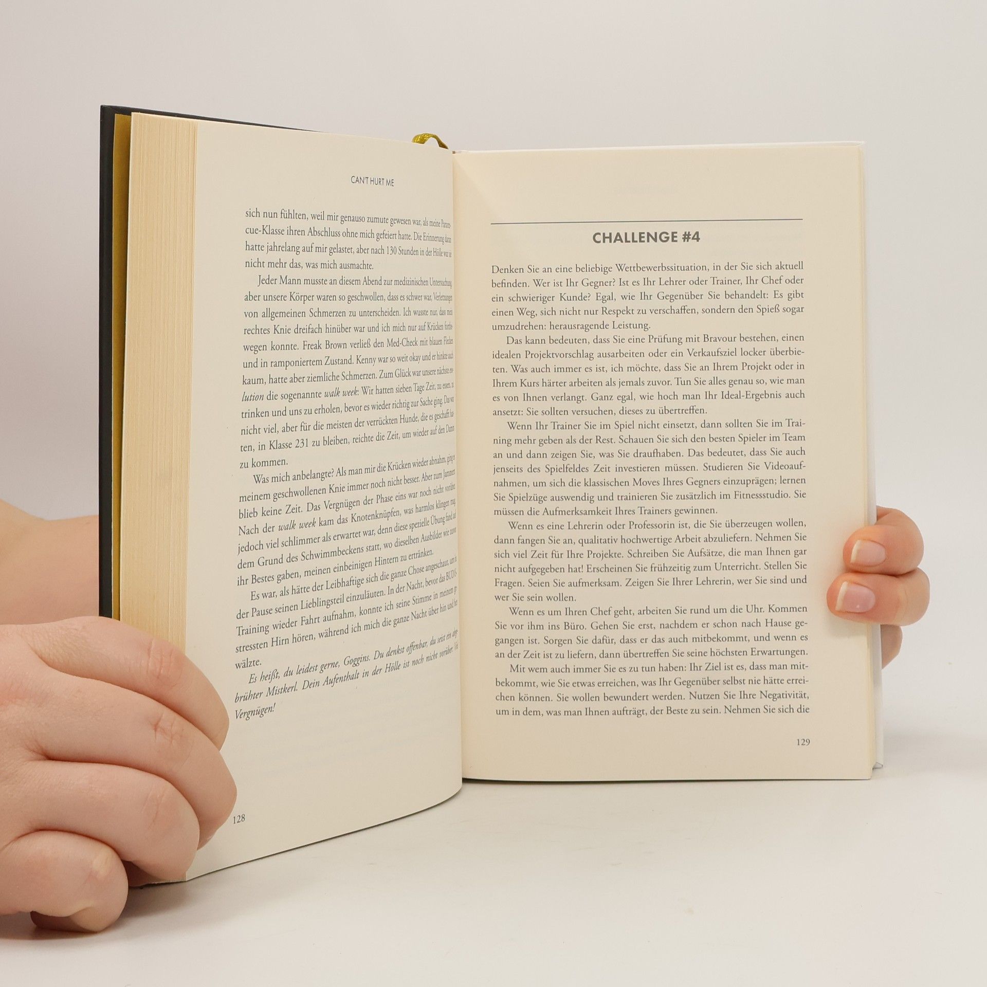 Für David Goggins war die Kindheit ein Albtraum – Armut, Vorurteile und körperliche Misshandlung verfolgten ihn bis in seine Träume. Doch durch Selbstdisziplin, mentale Stärke und harte Arbeit verwandelte er sich vom depressiven, übergewichtigen Jugendlichen ohne Perspektive in eine Ikone der U. S. Army und einen der Top-Ausdauersportler der Welt. Er ist der Einzige, der je das Elitetraining sowohl zum Navy SEAL als auch U. S. Army Ranger und Air Force Tactical Air Controller bestand, außerdem stellte er zahlreiche Ausdauerrekorde auf. In »Can’t Hurt Me« erzählt er seine wahrlich erstaunliche Lebensgeschichte und zeigt, dass die meisten von uns nicht einmal die Hälfte ihres Potenzials ausschöpfen. Goggins bezeichnet dies als 40-Prozent-Regel. Sein herausragendes Beispiel veranschaulicht hingegen, wie es jedem gelingen kann, das zu ändern und Schmerzgrenzen und Ängste zu überwinden.