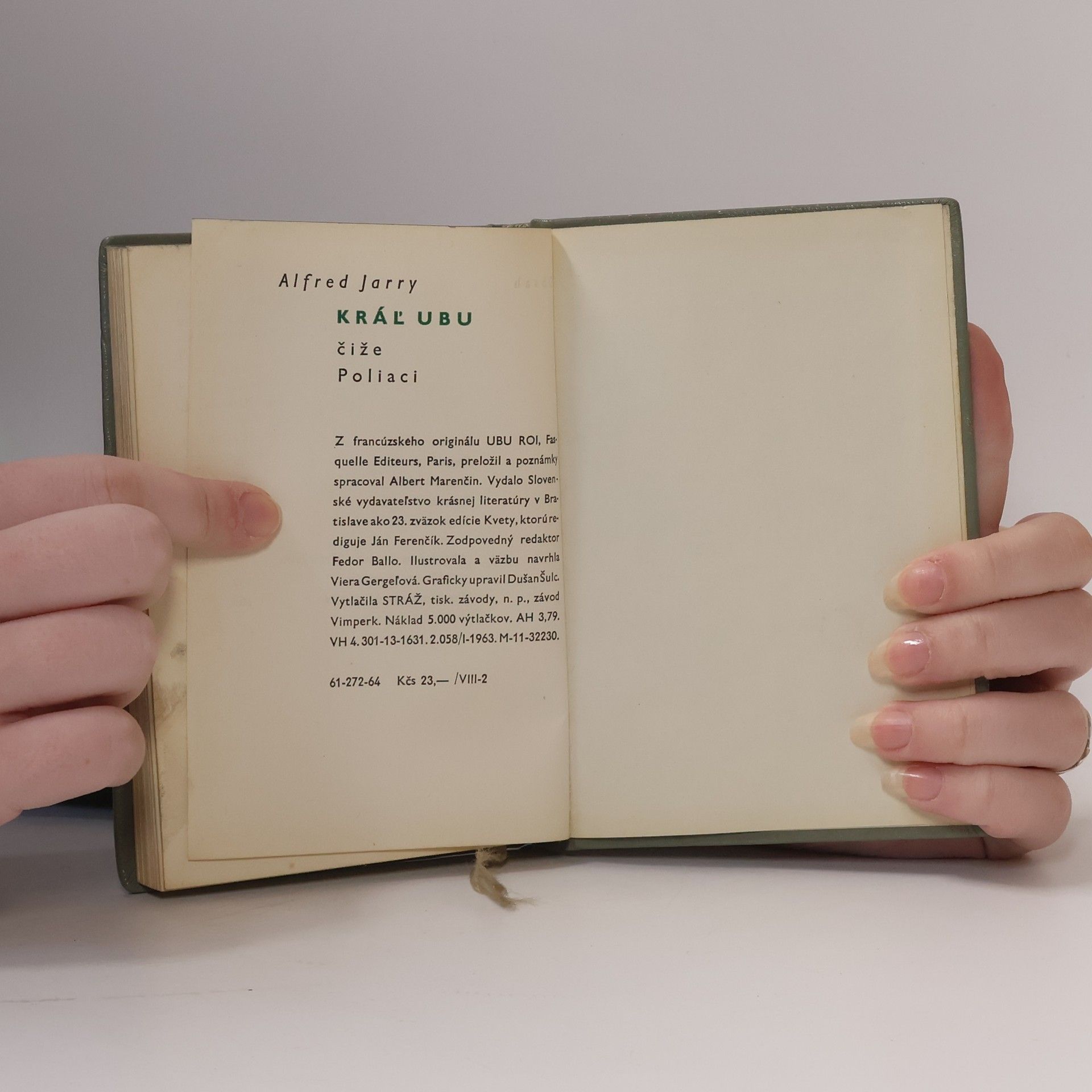 Bibliofilské vydanie slávnej hry Alfreda Jaryho (1873-1907) s desiatimi originálnymi serigrafiami popredných slovenských výtvarníkov. Autor, kráľ mystifikácie a patafyziky, napísal toto dielo ako pätnásťročný študent, no zapísal sa ním do svetovej literatúry medzi takých autorov ako Cervantes či Hašek. Kniha bola ocenená ako Najkrajšia kniha Slovenska 1994.